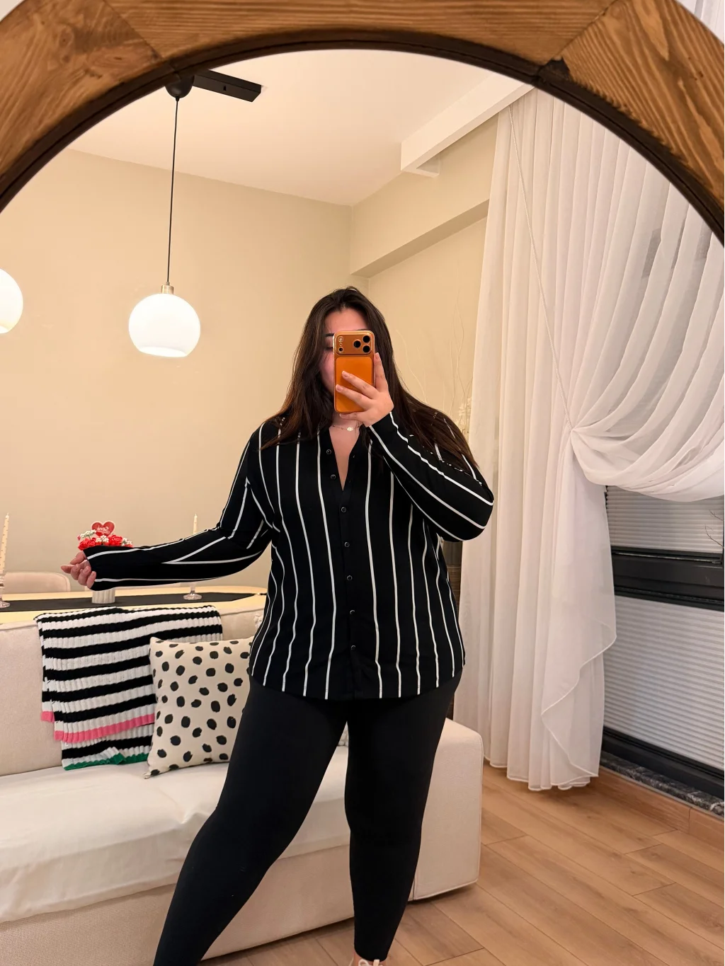 Geniş Kesim Pamuklu Tensel Gömlek - Beyaz Çizgili