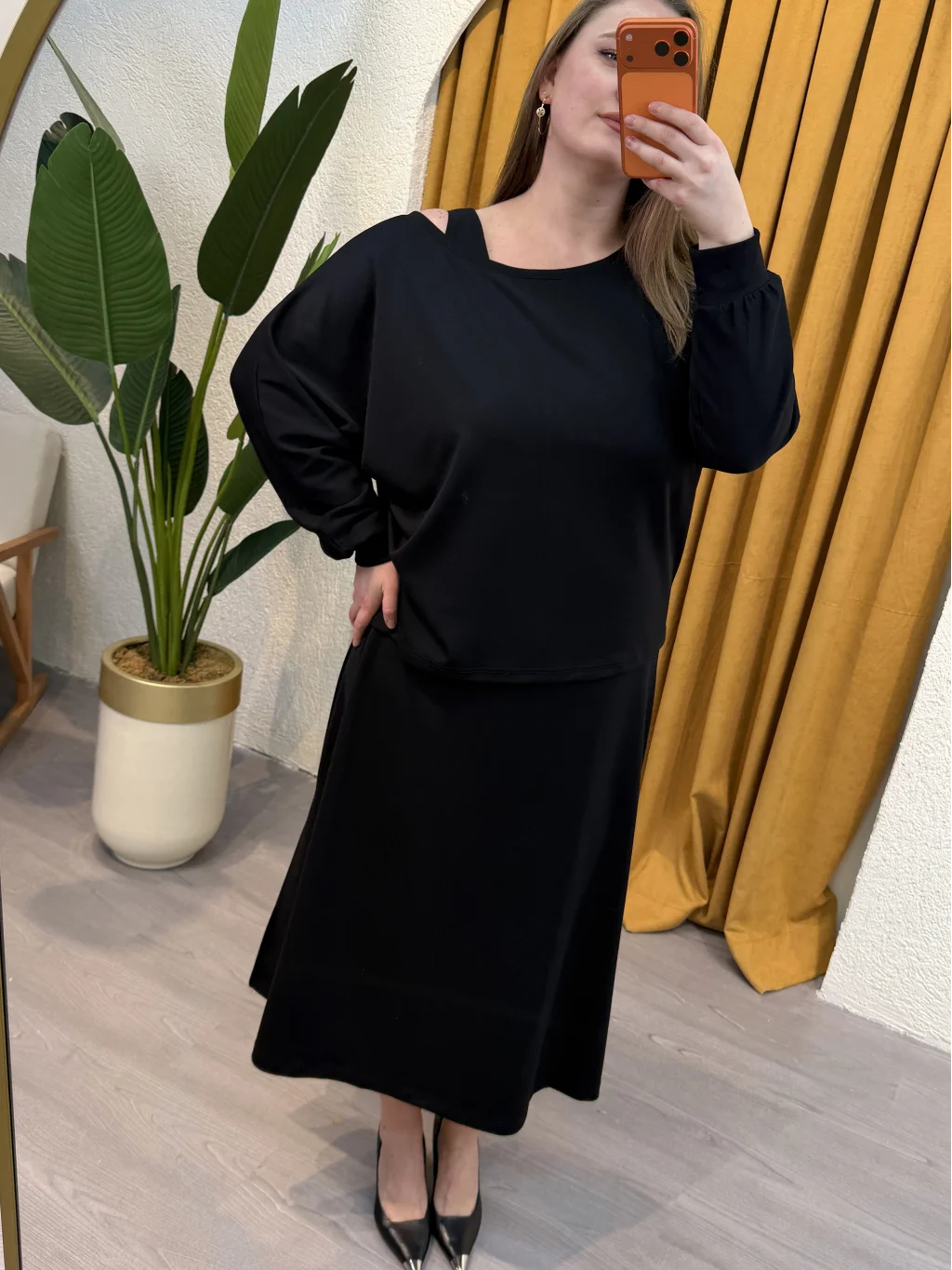 İki Parçadan Oluşan Elbise, Kayık Yaka, Rahat Kalıp , Esnek Modal Kumaş