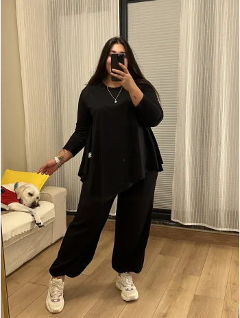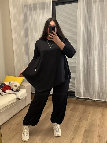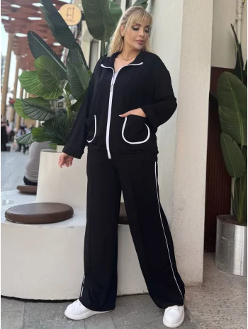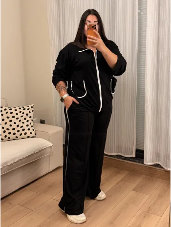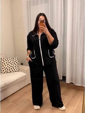 Fermuarlı Şerit Detaylı Esnek Modal Takım - Siyah