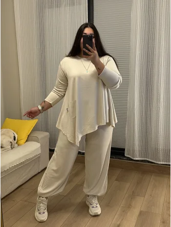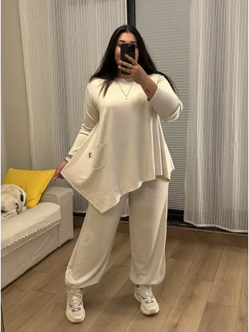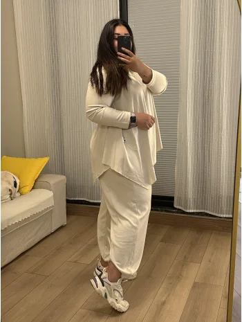 Premium Arma Detaylı Modal Eşofman Takımı - Krem