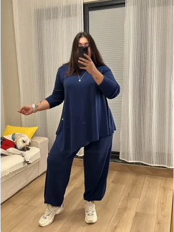 Kayık Yaka Esnek Modal Takım - Lacivert