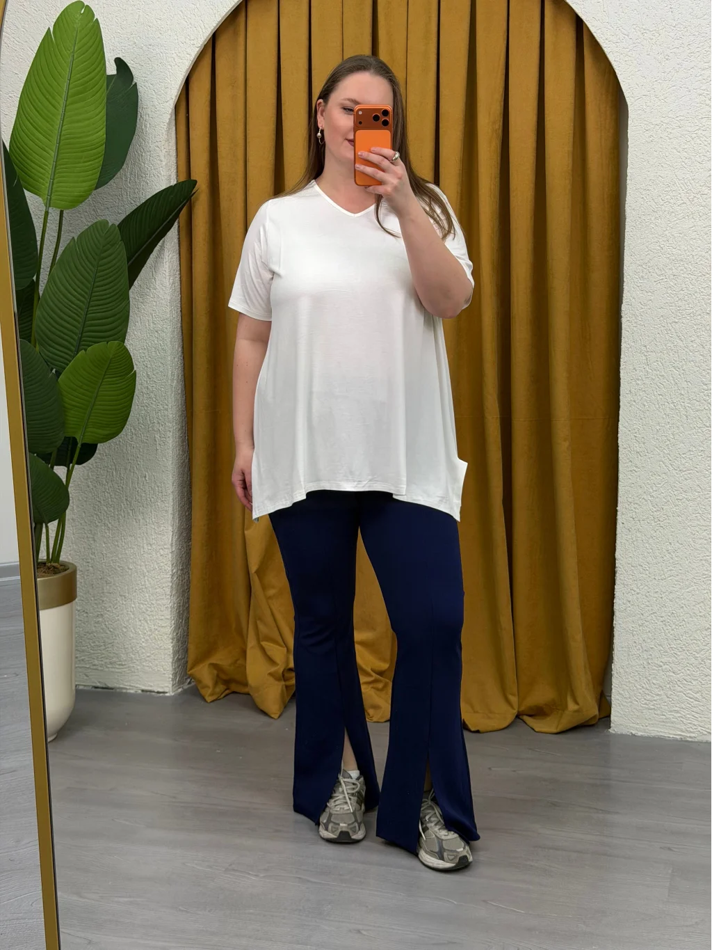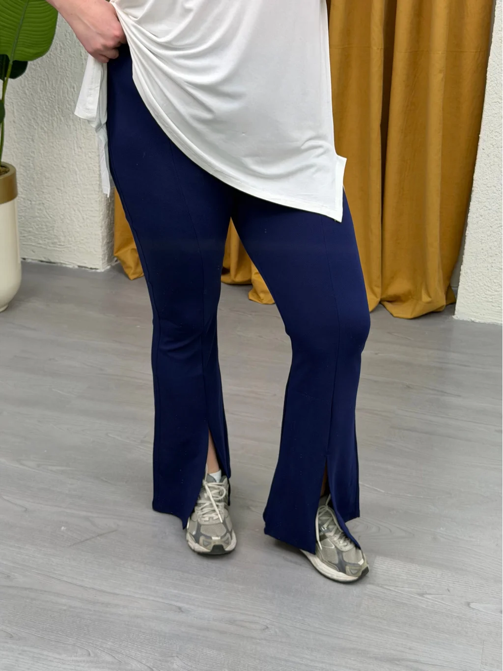 İspanyol Paça Yırtmaçlı Esnek Krep Pantolon - Lacivert