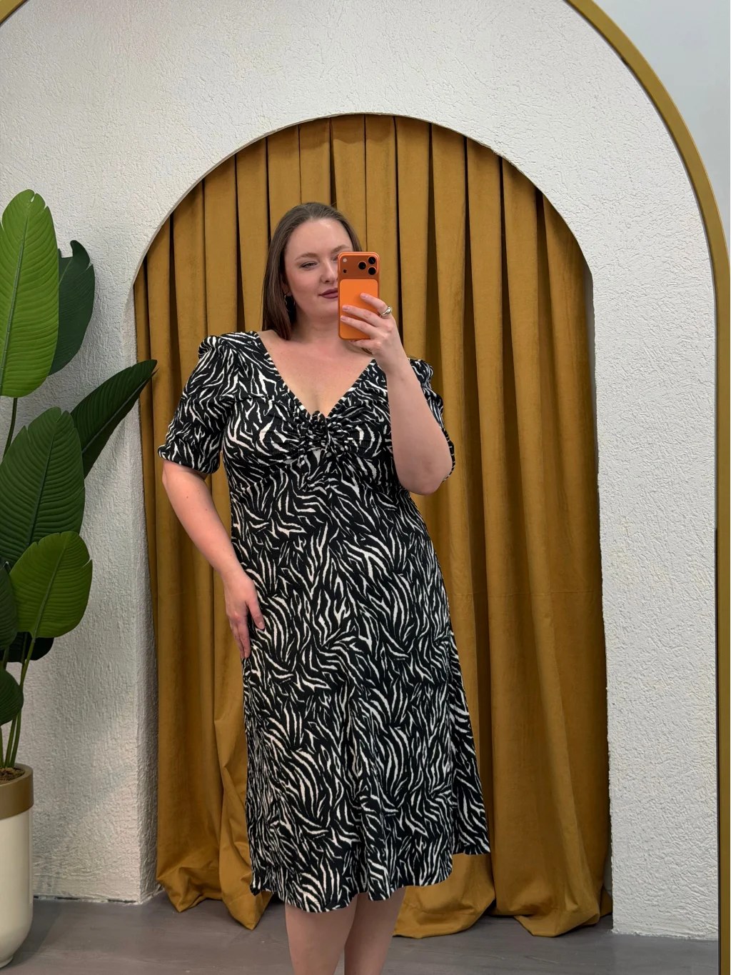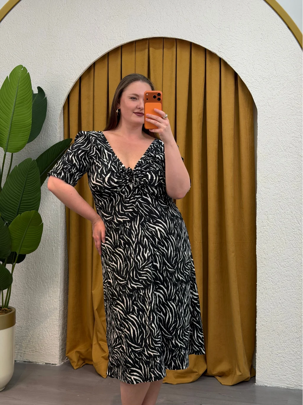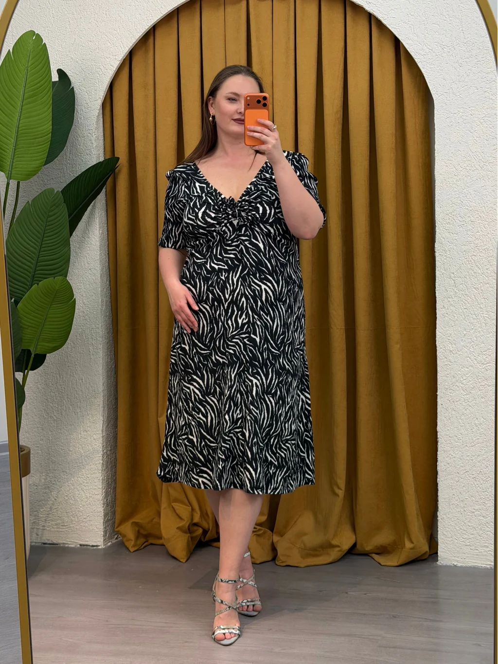 Kalp Yaka Esnek Bürümcük Elbise - Zebra