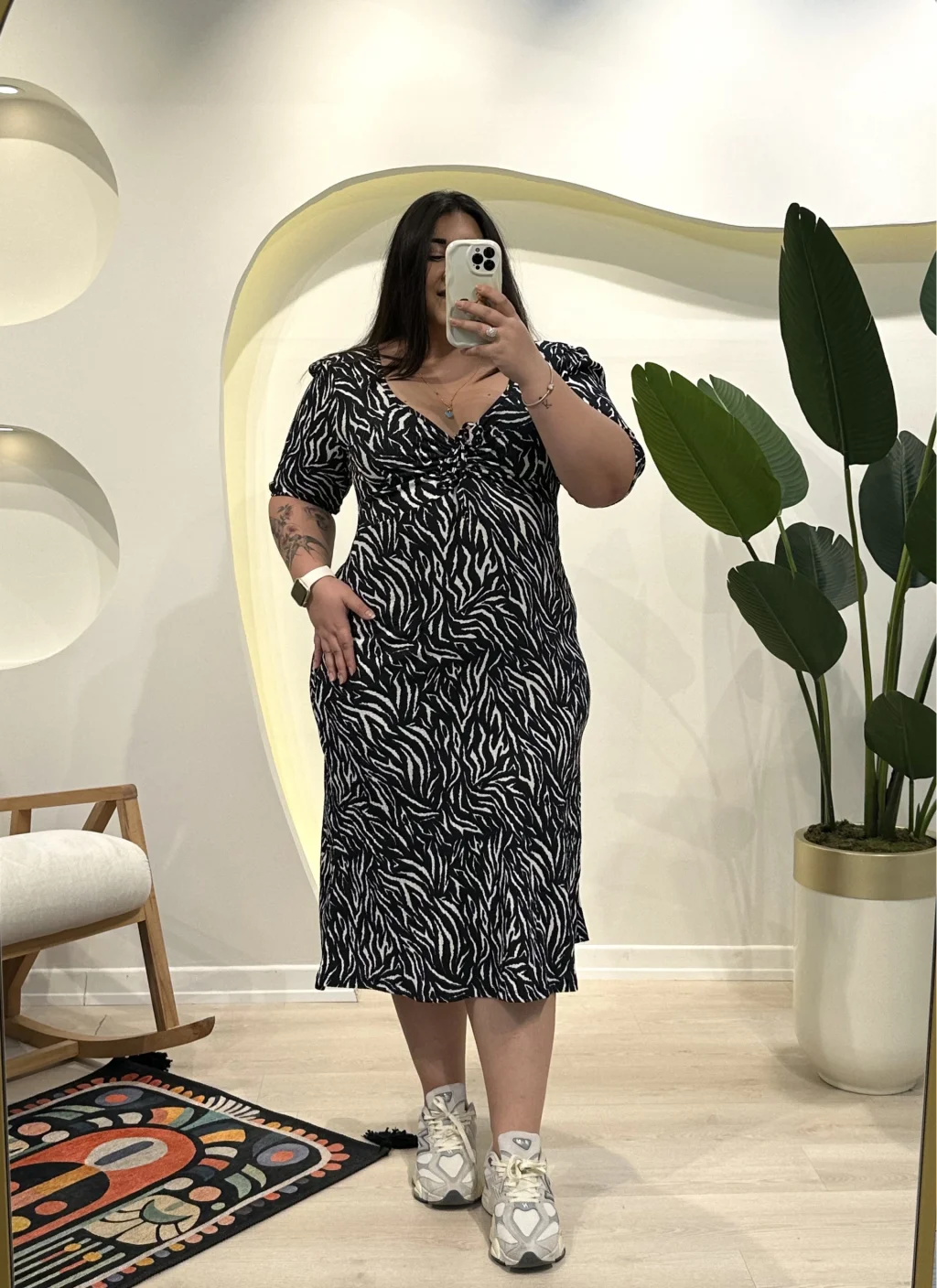 Kalp Yaka İpli Bürümcük Elbise - Zebra Desen