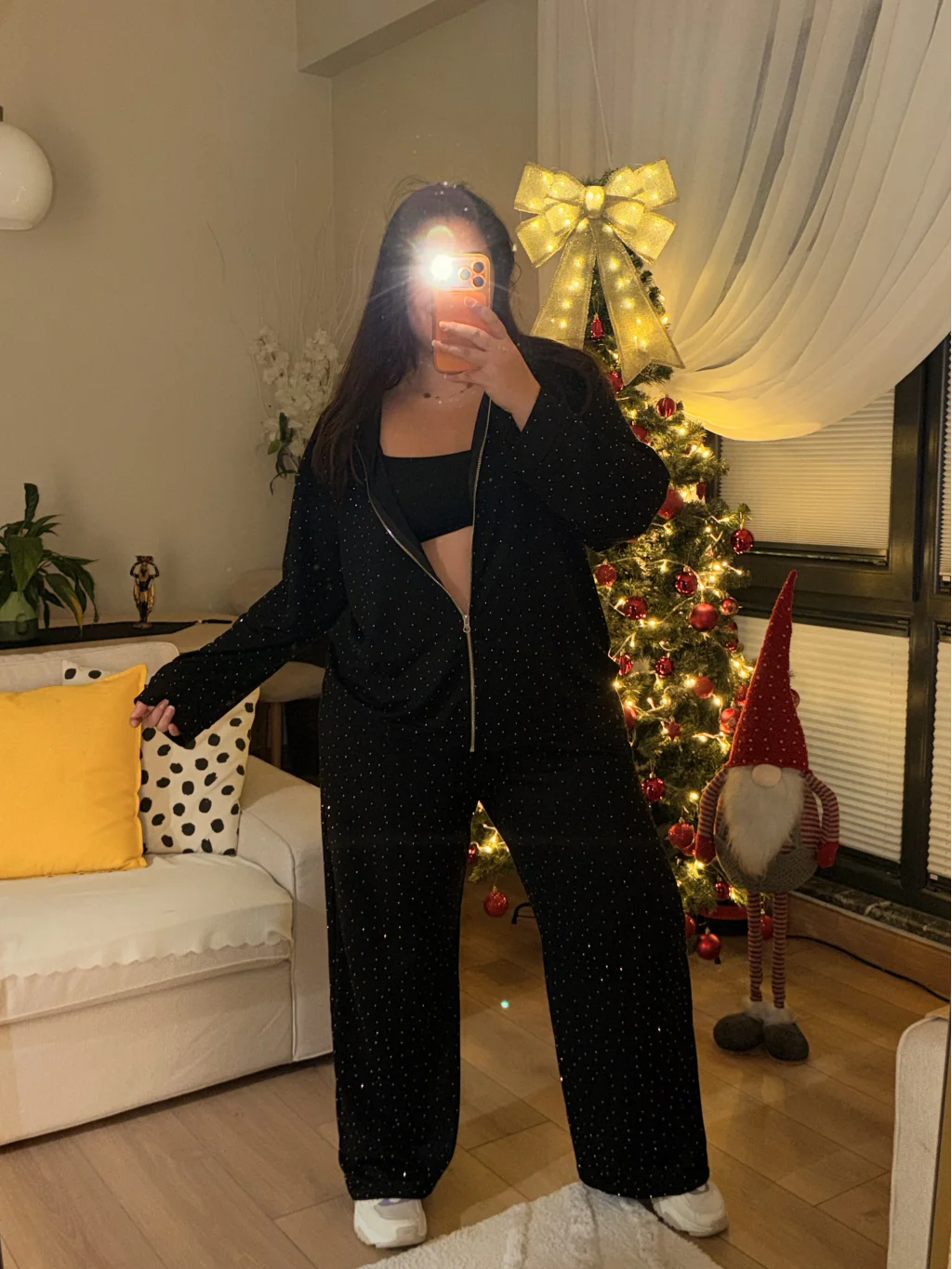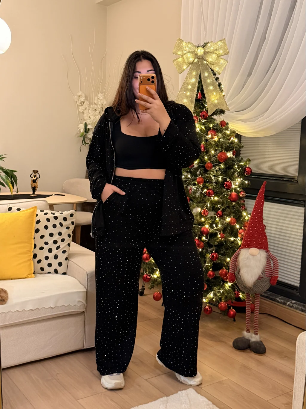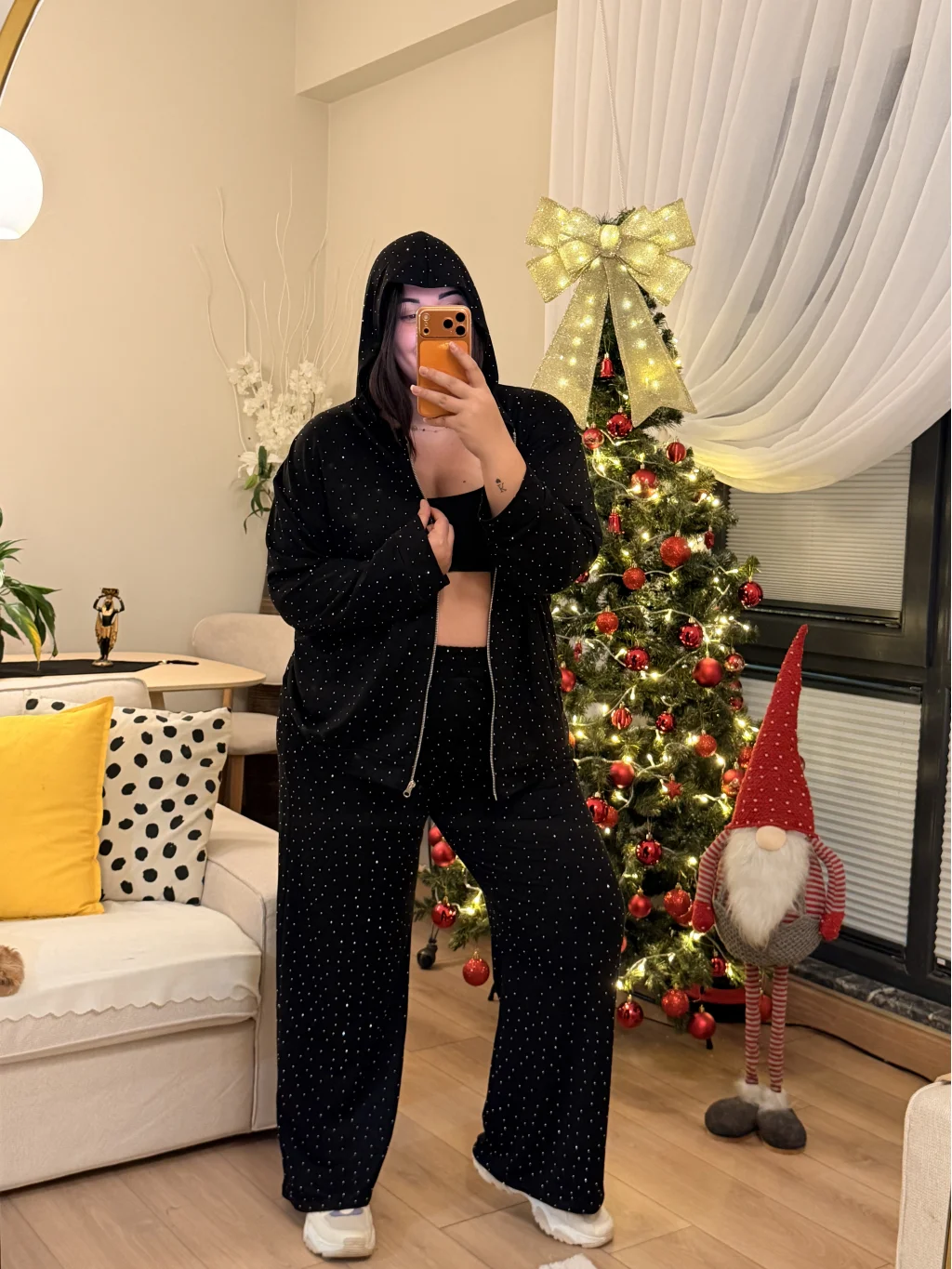 Fermuarlı, Taş Detaylı , Esnek Modal Karışımlı Kumaş, Rahat Kalıp, Kapüşonlu Takım