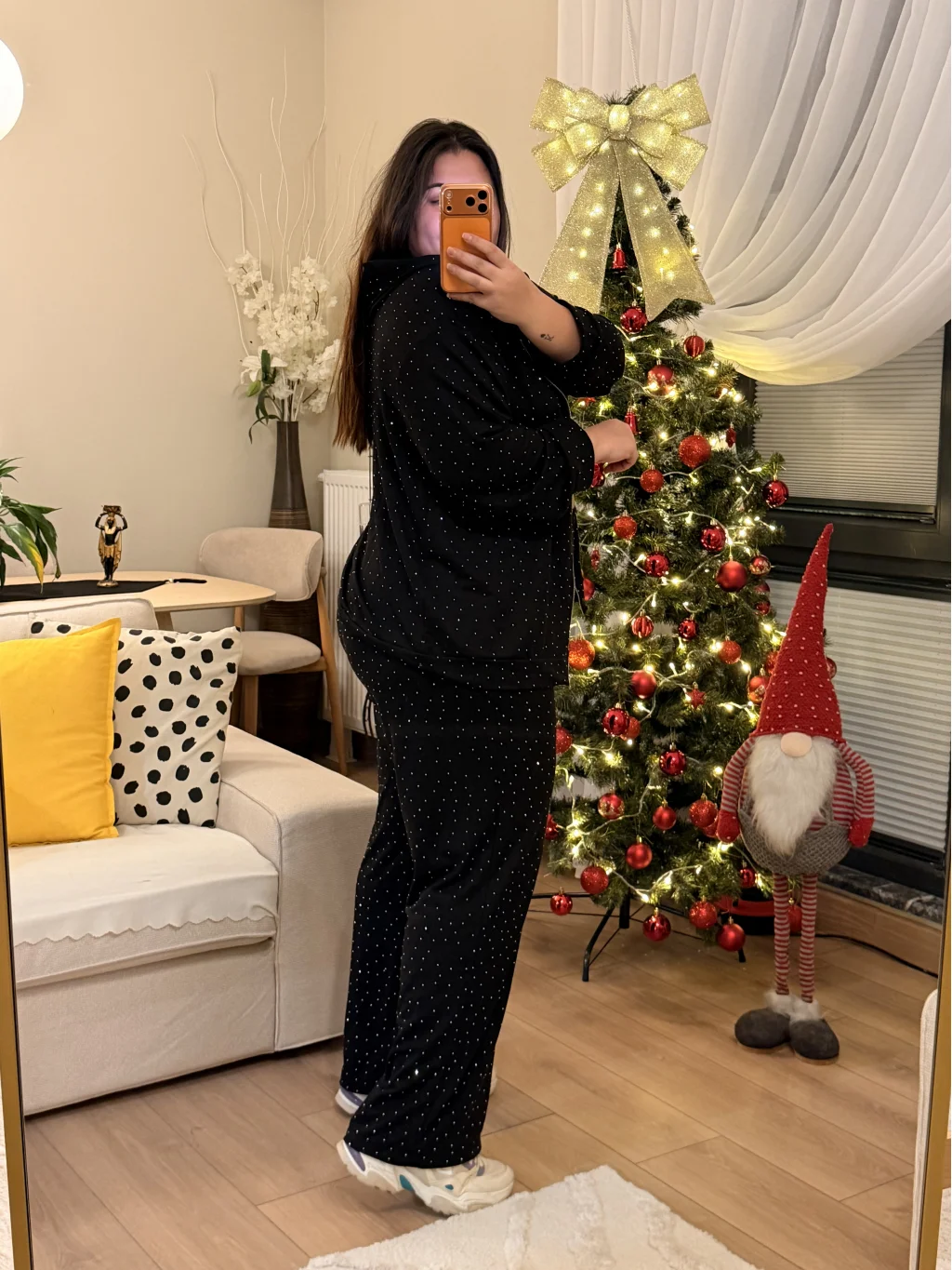 PASTEL BUTİK Kapüşonlu Modal Shine Takım - Siyah, şıklığı ve rahatlığı bir arada sunar.