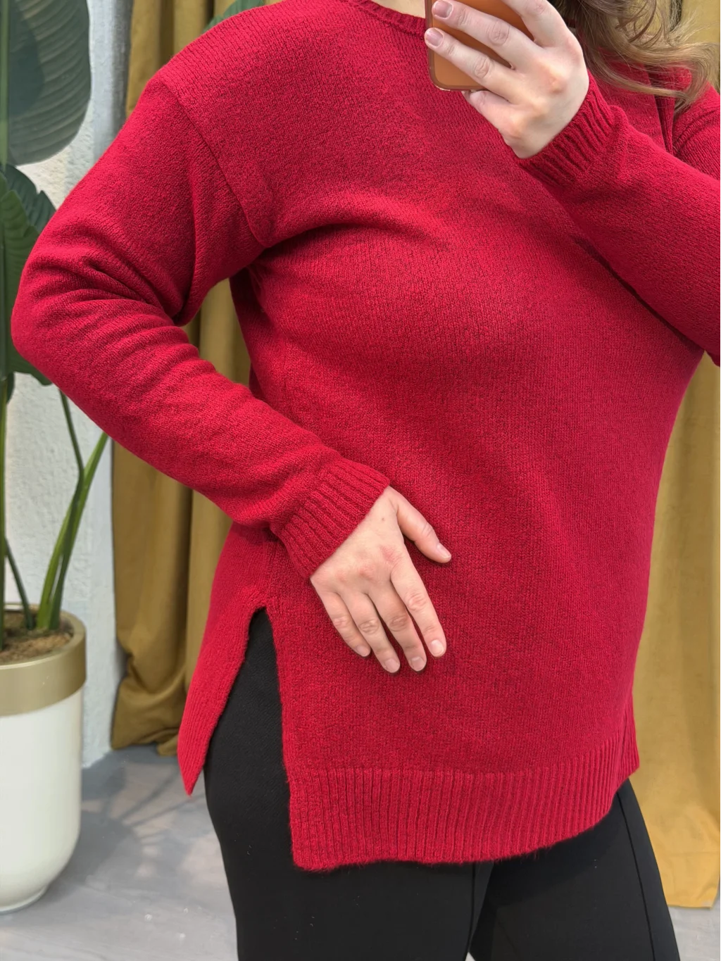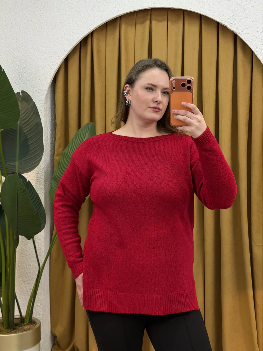 PASTEL BUTİK Kayık Yaka Oversize Kazak - Kırmızı: Rahat ve şık görünüm için ideal bir seçim!