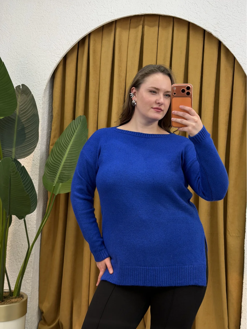 Kayık Yaka, Örme Triko , Rahat Kalıp Esnek, Likralı