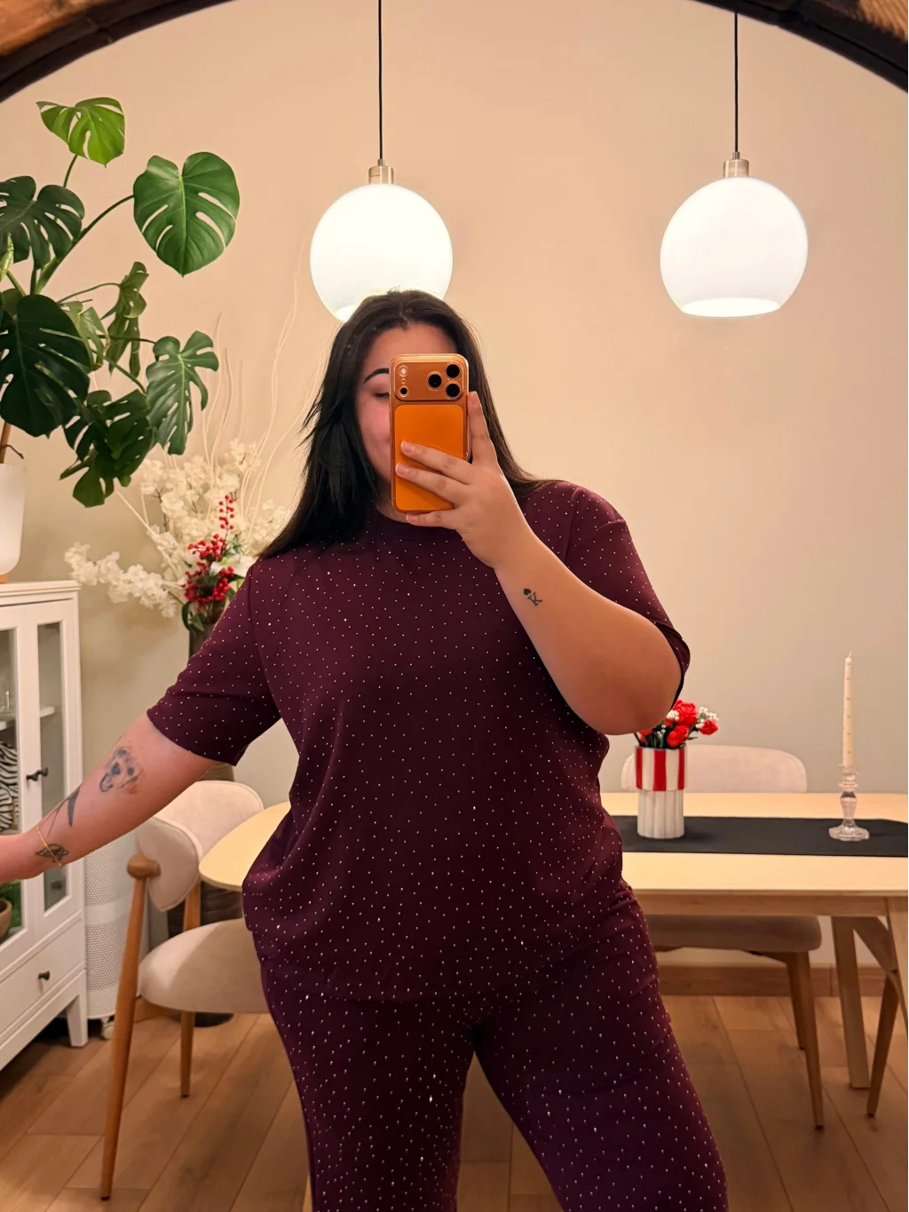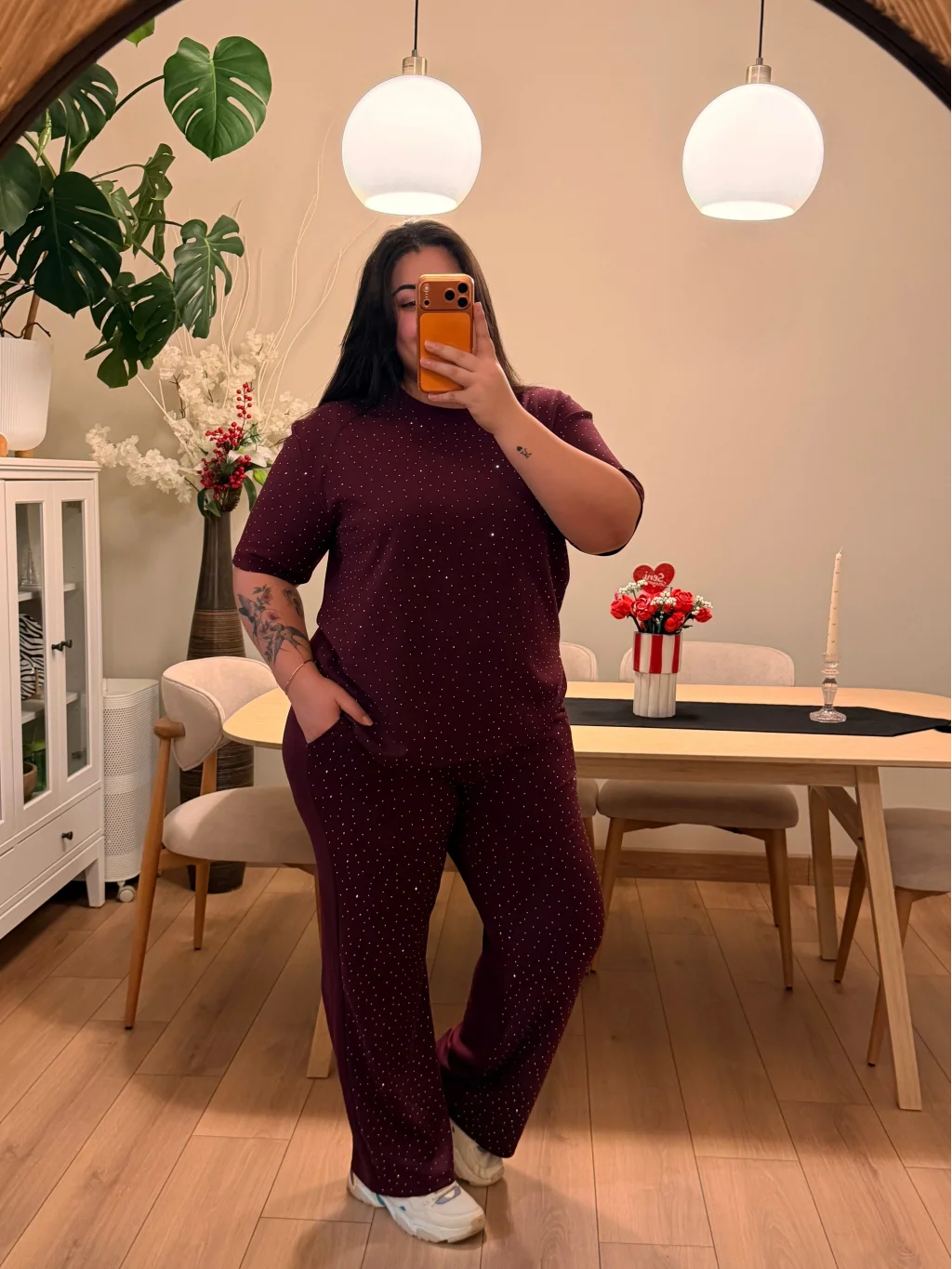 Kısa Kol, Rahat Kalıp, Esnek Modal Kumaş, Taş Detaylı, İkili Takım