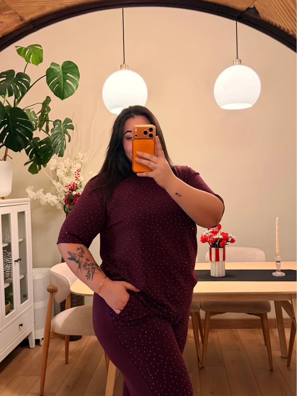 Kısa Kol Modal Shine İkili Takım - Bordo