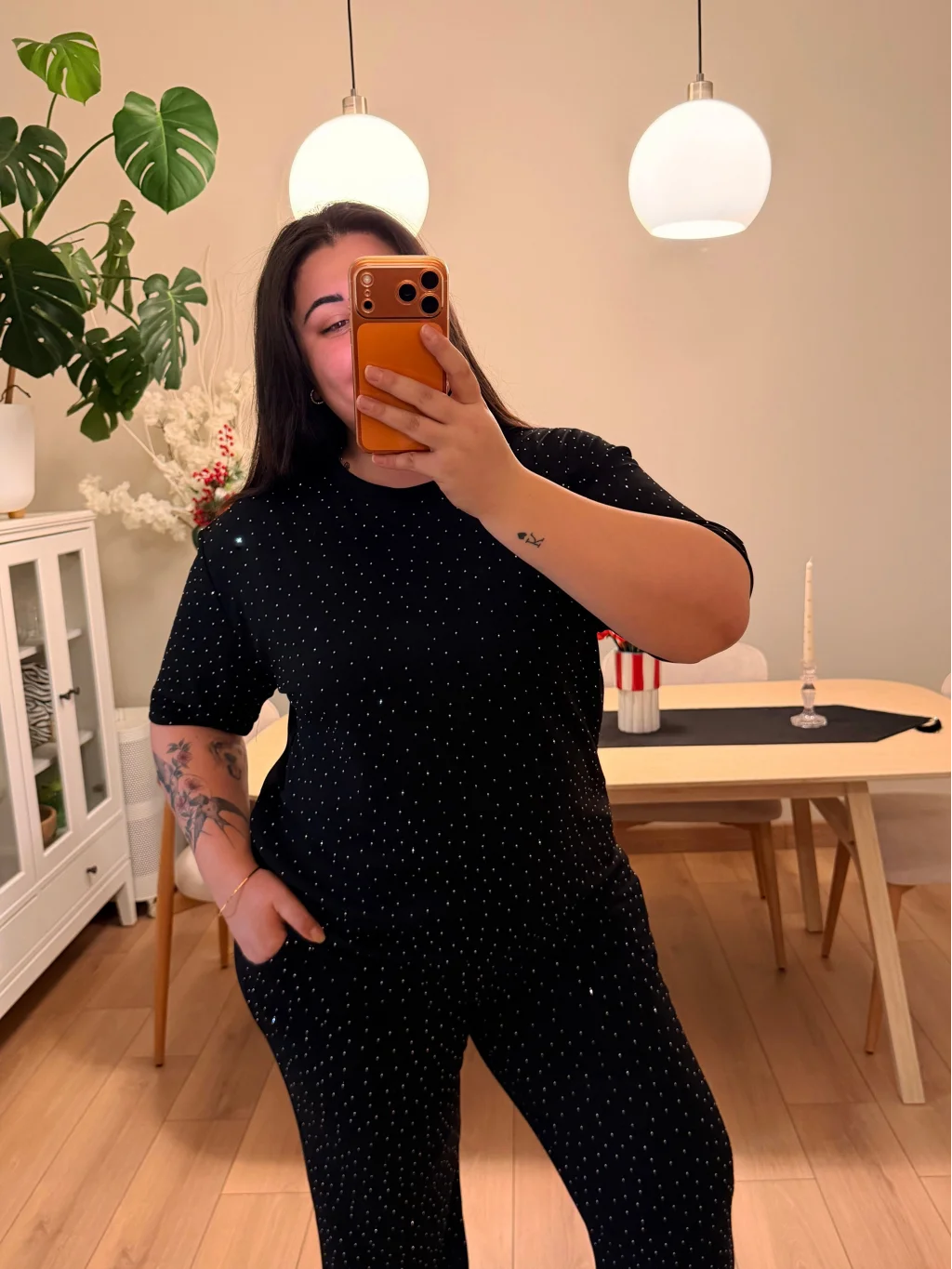 Kısa Kol, Rahat Kalıp, Esnek Modal Kumaş, Taş Detaylı, İkili Takım