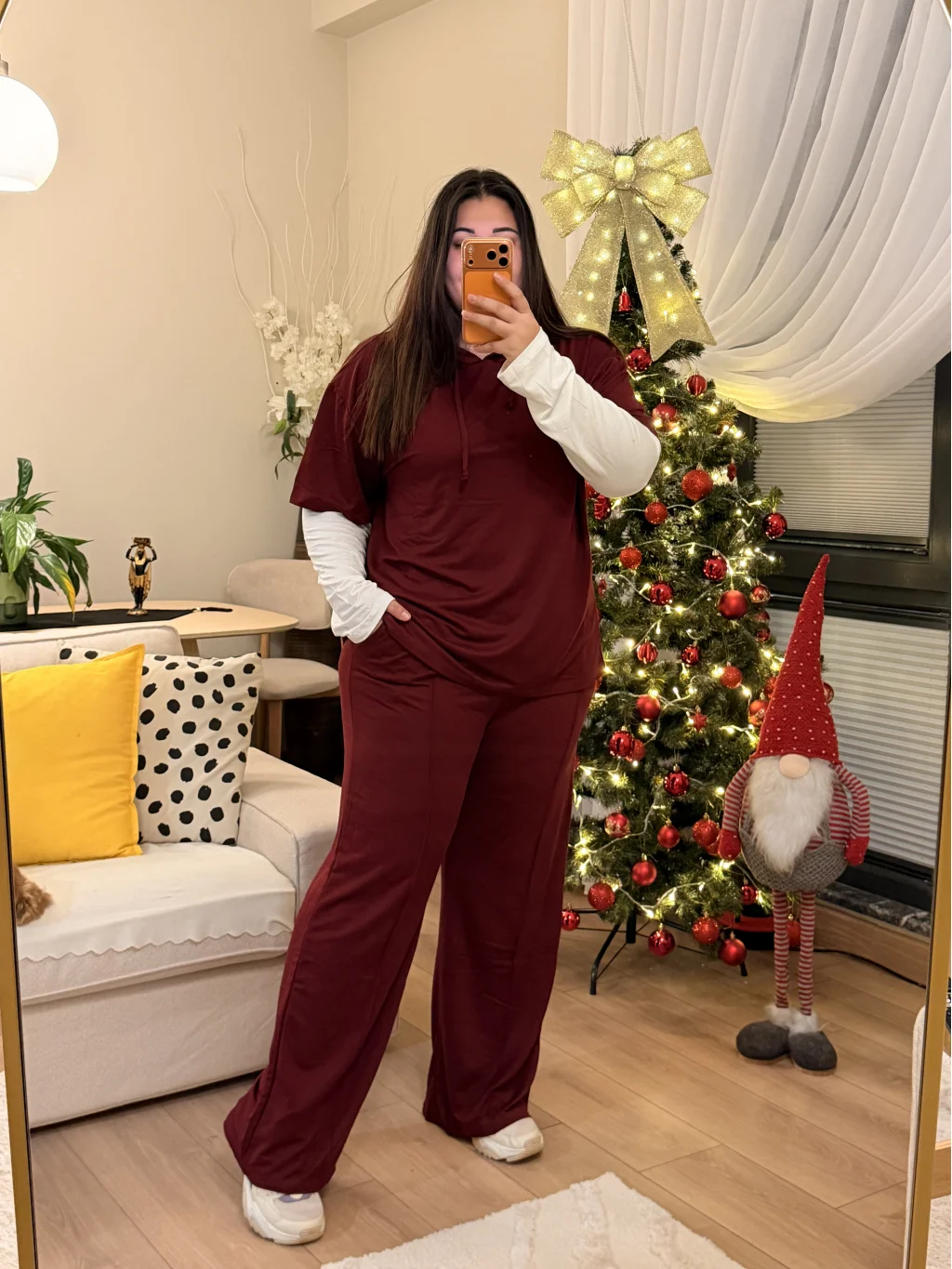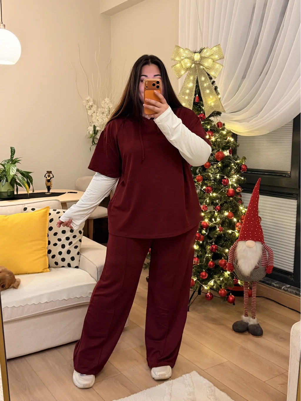 Kolları Parçalı Modal Kapüşonlu Takım - Bordo