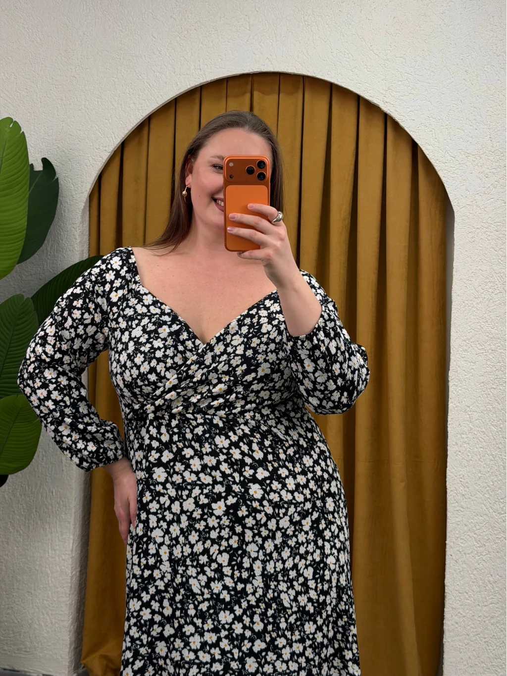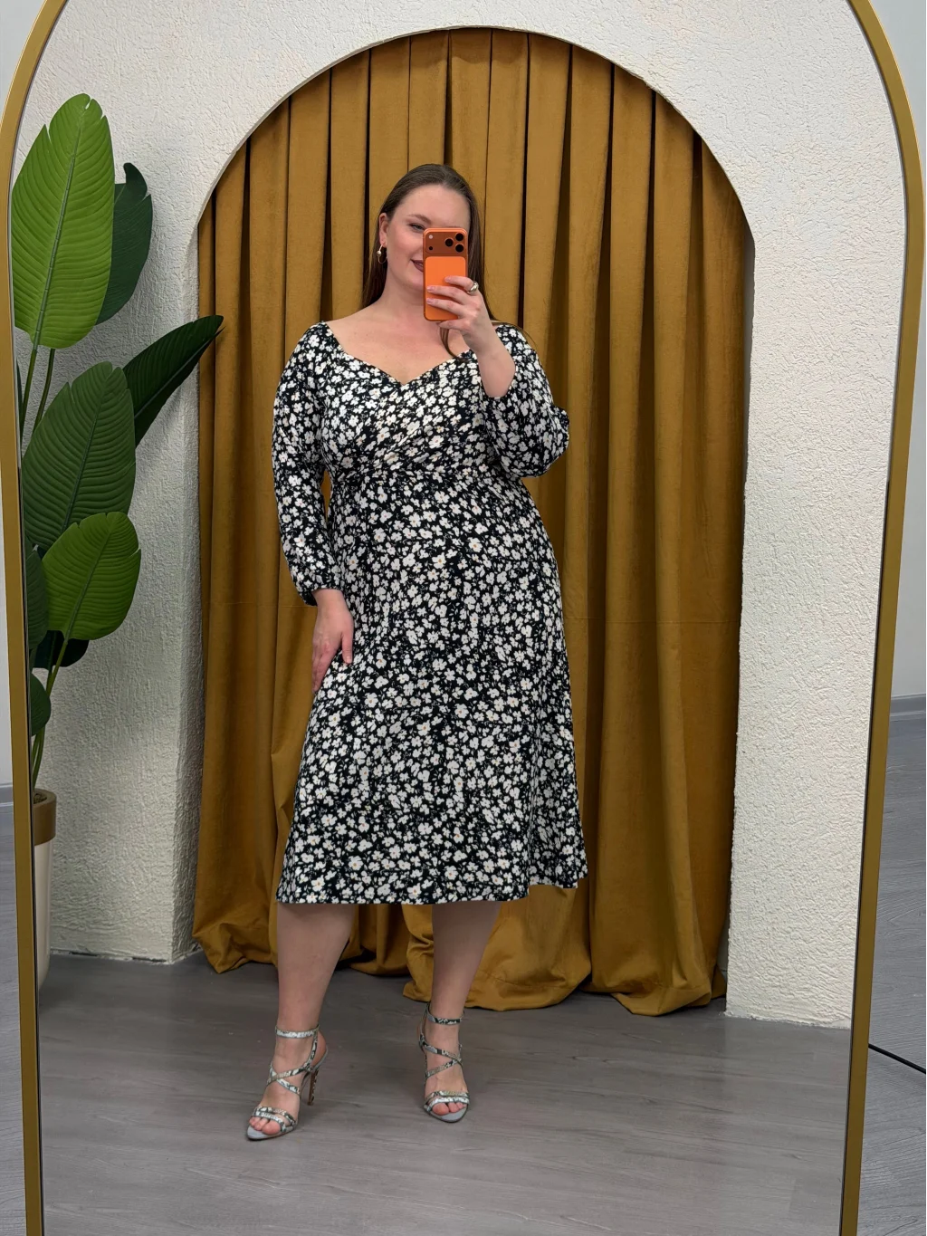 Kruvaze Yaka Bürümcük Elbise - Çiçekli