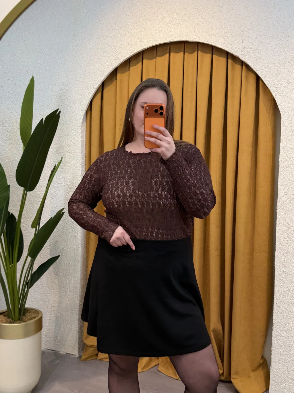 Biyeli Kare Yaka Esnek Triko Bluz - Pembe