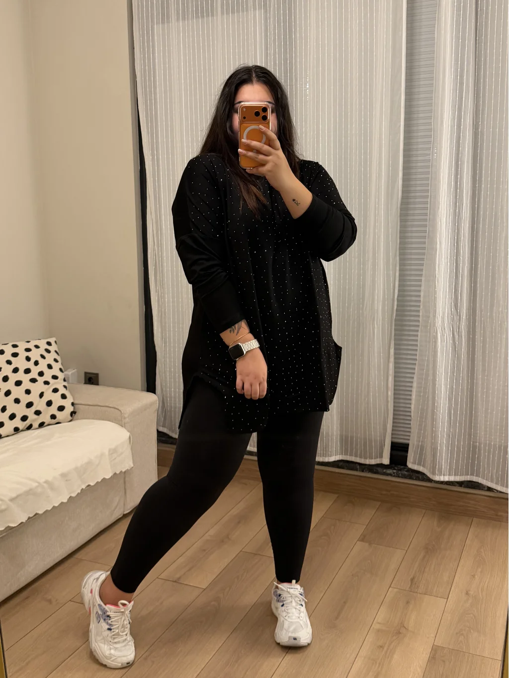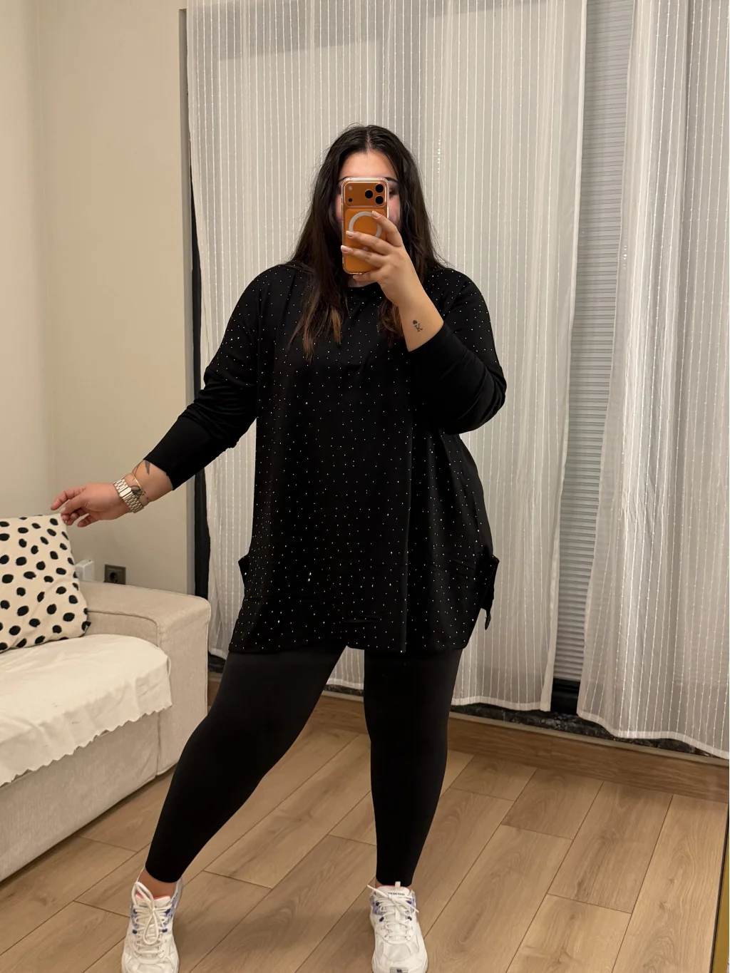 PASTEL Modal Kumaş Esnek Taş Detaylı Siyah Bluz, şıklığı ve konforu bir arada sunar.