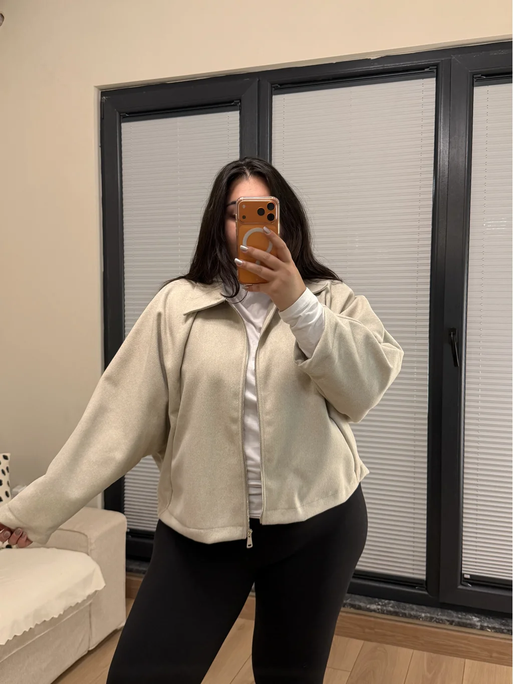Pastel Butik Oversize Kaşe Ceket - Ekru renginde şıklığı ve rahatlığı bir arada sunar.