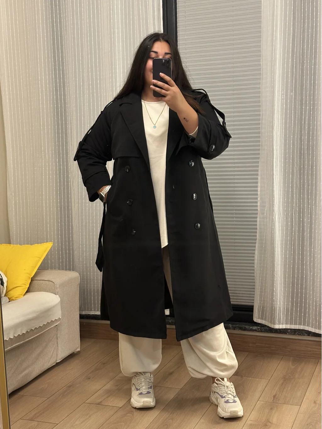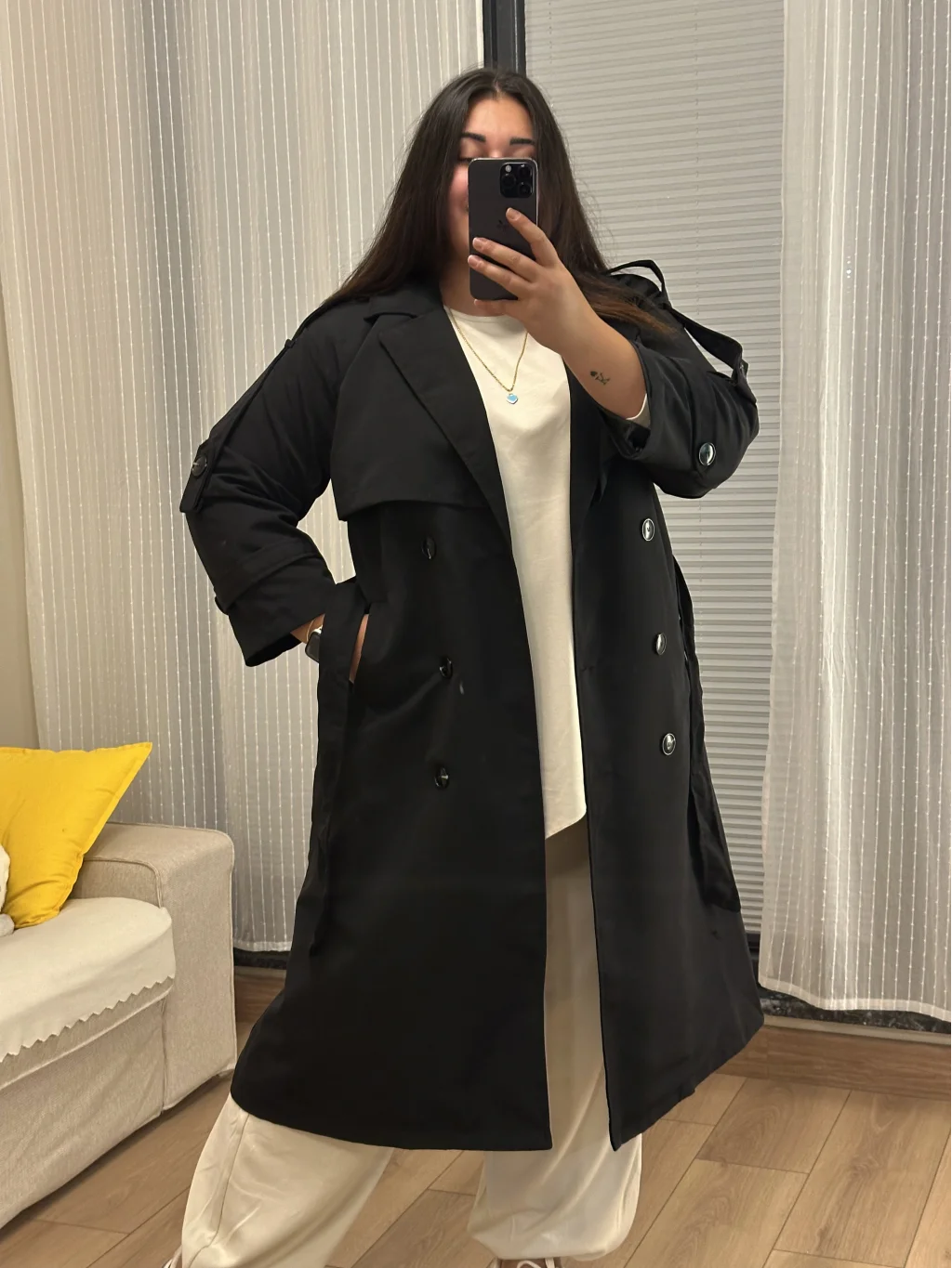 PASTEL Oversize Premium Trençkot - Siyah, Büyük Beden Kadın Trençkot arayanları şıklık ve konforla buluşturuyor.