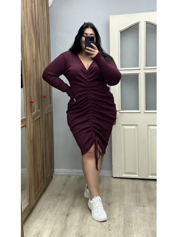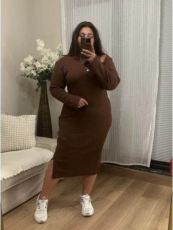 Damla Detay Likrali Triko Elbise - Kahverengi