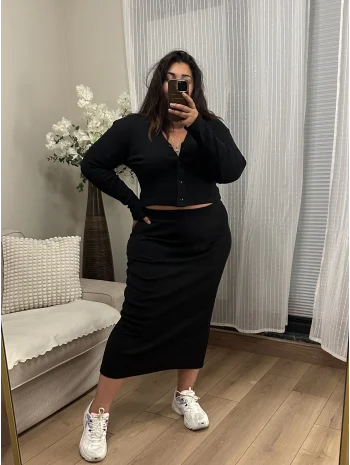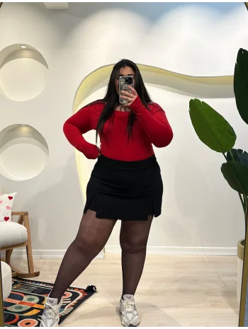Çift Yırtmaçlı Şortlu Krep Etek - Siyah