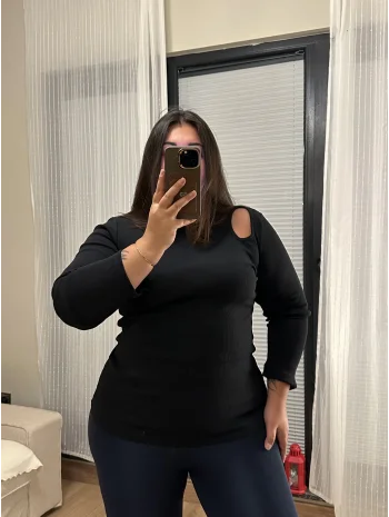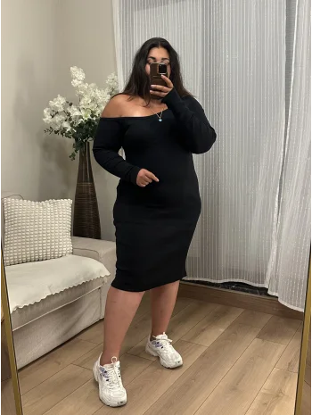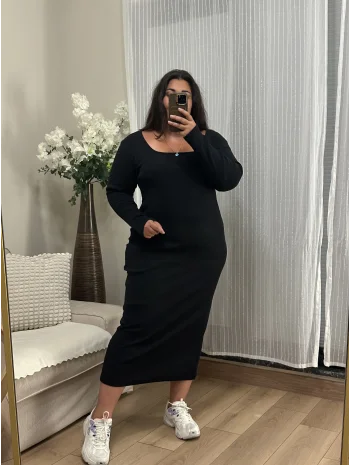 Tek Omuz Detay Esnek Triko Elbise - Siyah