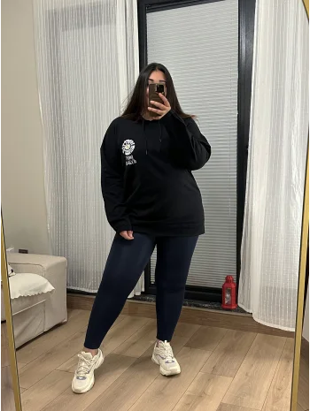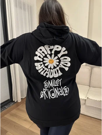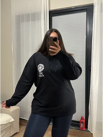 Geniş Kalıp 2 İplik Kapüşonlu Sweatshirt - Siyah Papatya