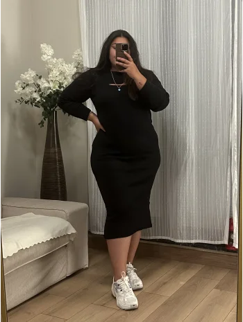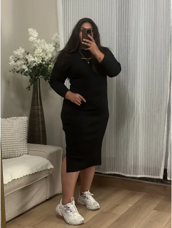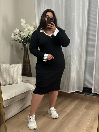 Gömlek Yaka Esnek Triko Elbise - Siyah