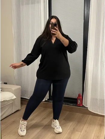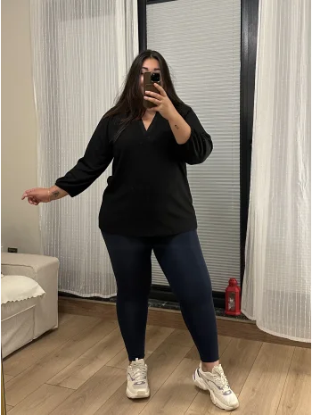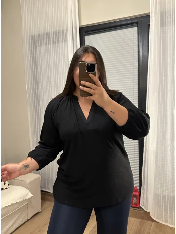 Patlı Hakim Yaka Esnek Bürümcük Bluz - Siyah