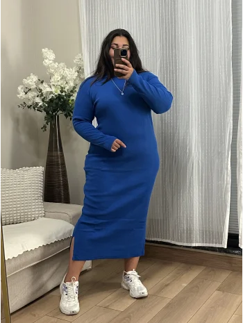 Tam Boy Esnek Triko Elbise - Saks Mavi