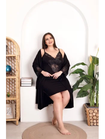 Premium Likralı Sabahlık Takım - Siyah