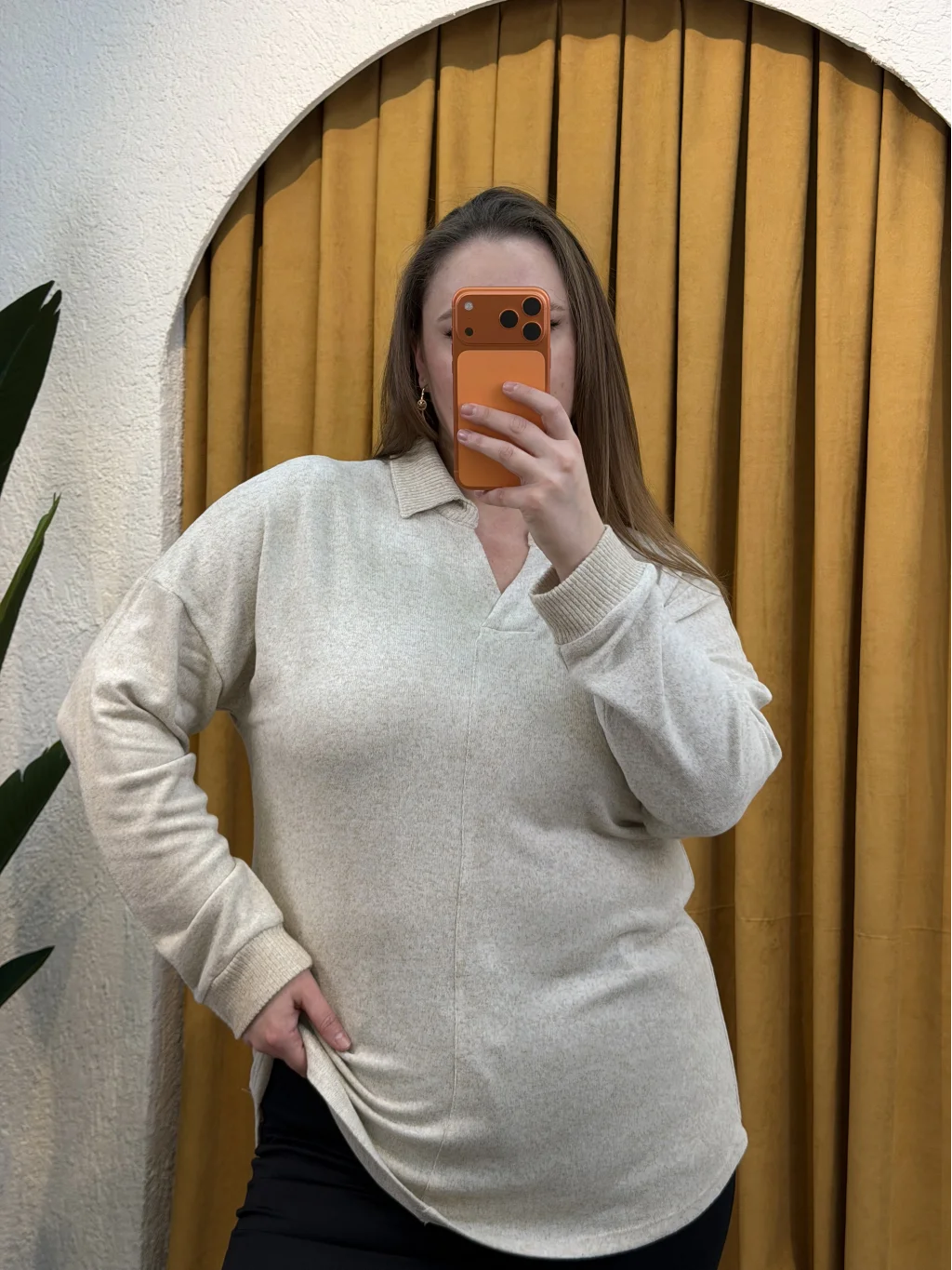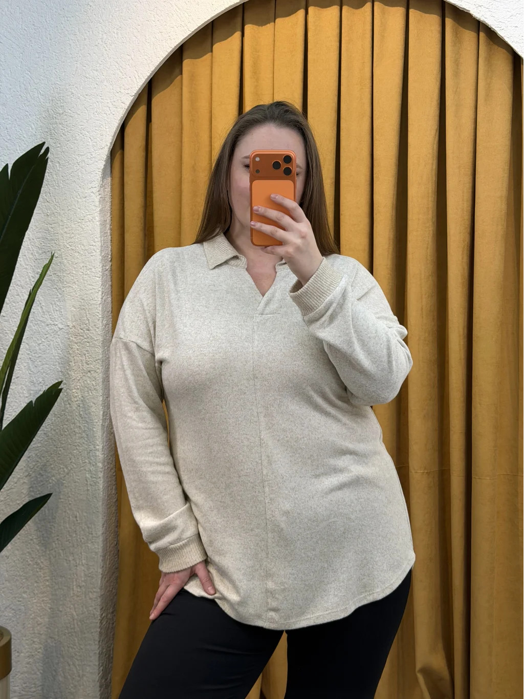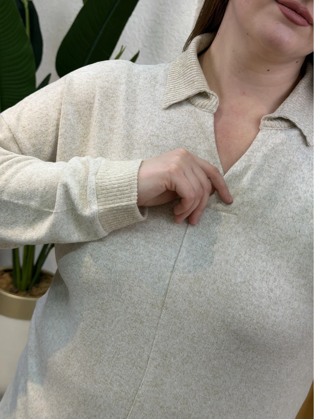 Polo Yaka Esnek Yumoş Bluz - Ekru
