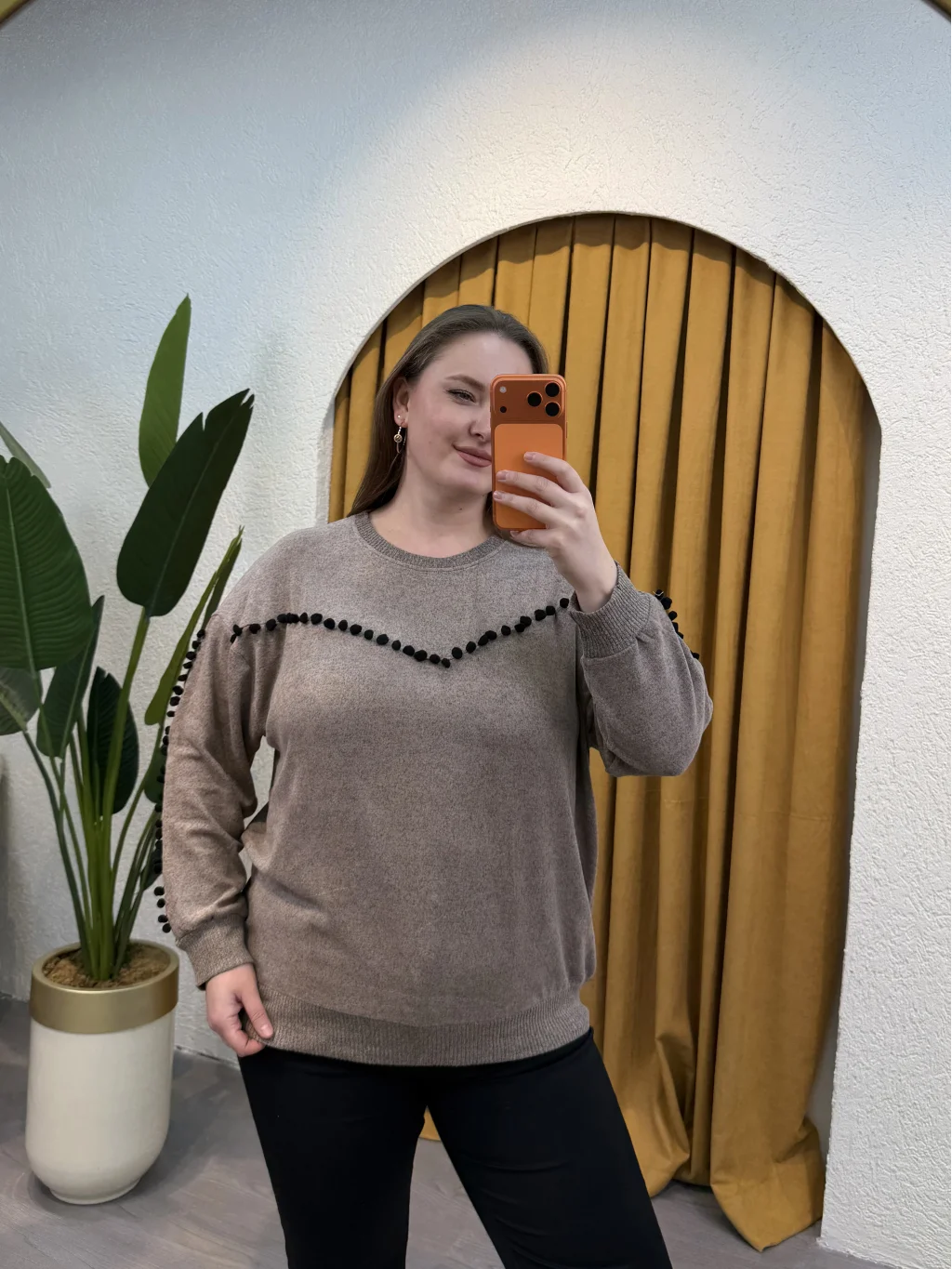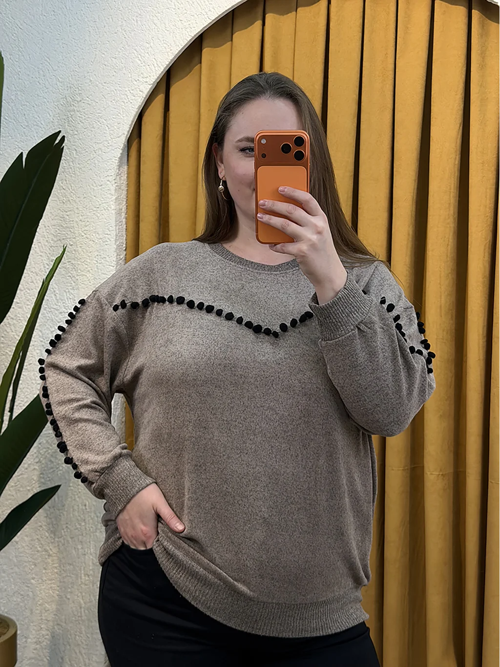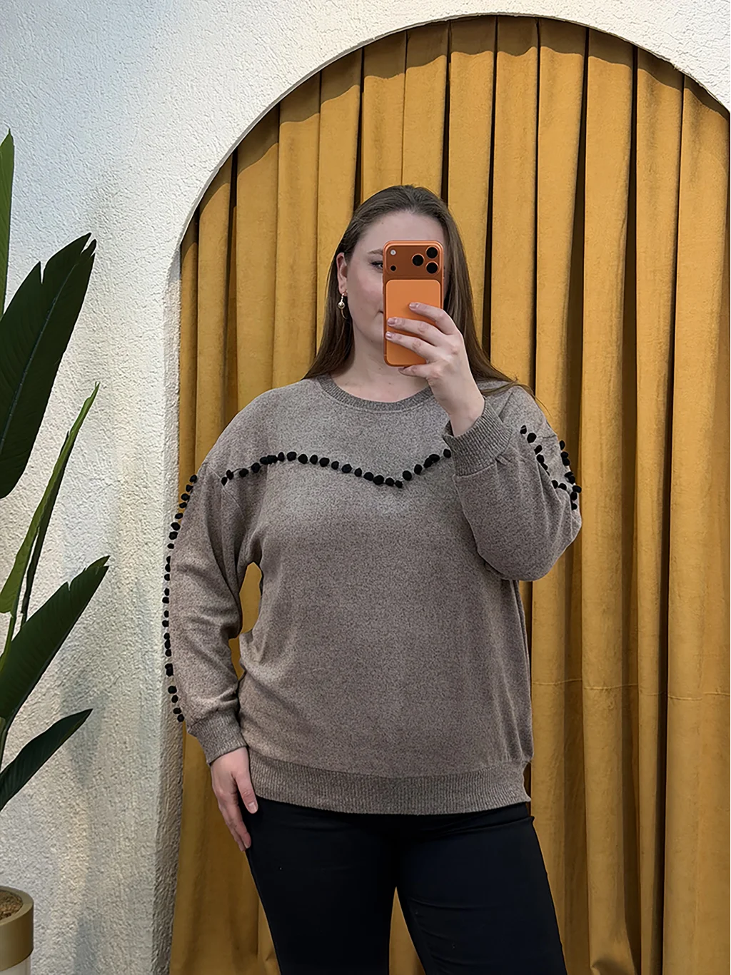Ponponlu Esnek Yumoş Bluz - Kahverengi