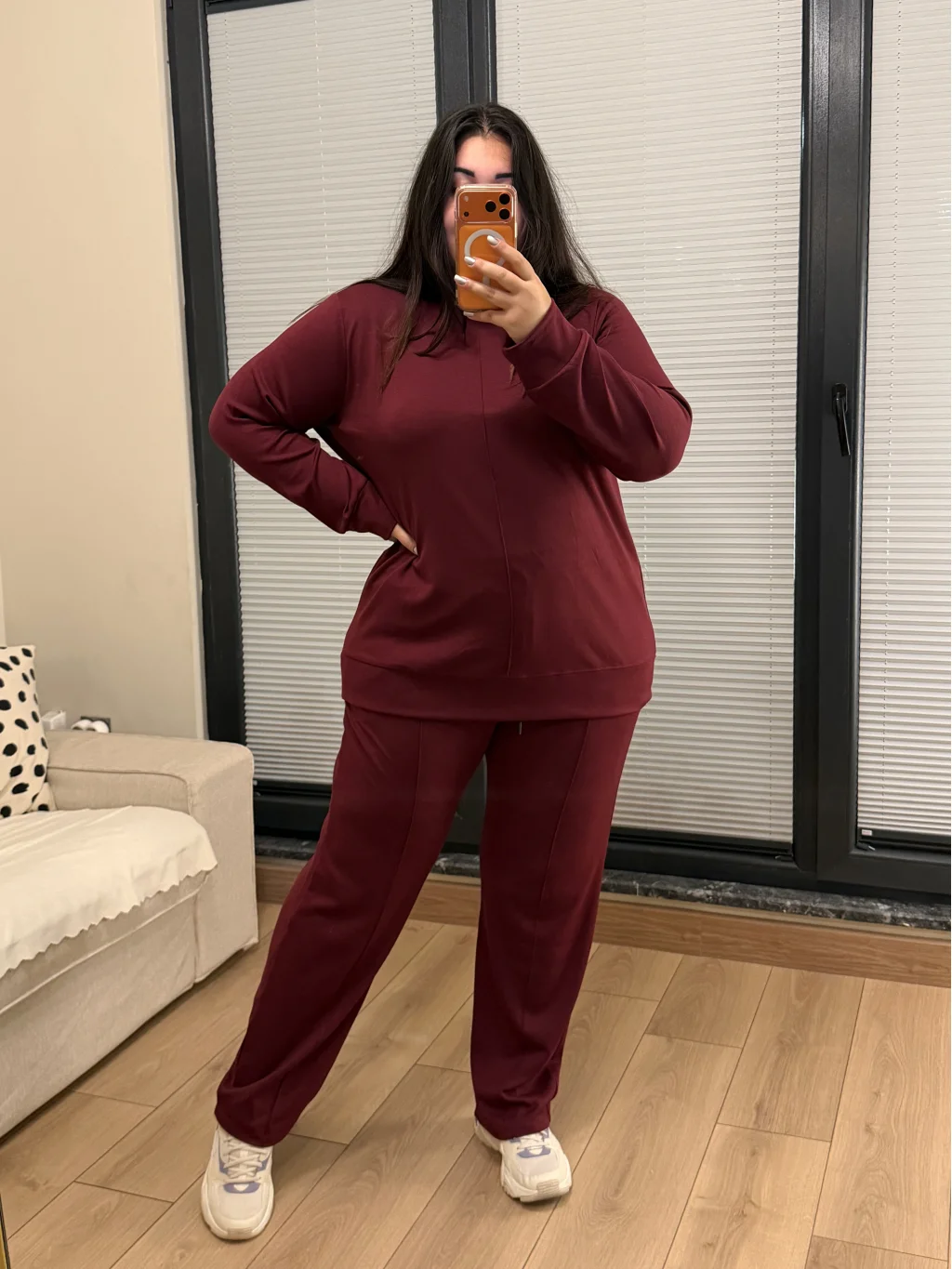 Pastel Butik Premium Çıma Detaylı Modal Eşofman Takımı - Bordo, şıklığı ve konforu bir arada sunar.