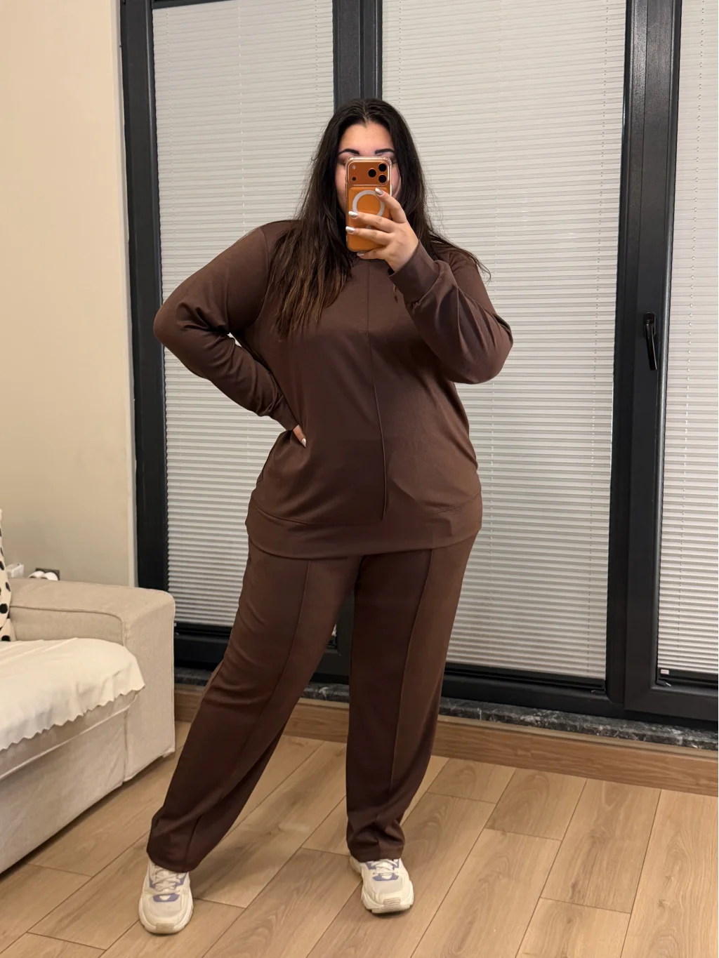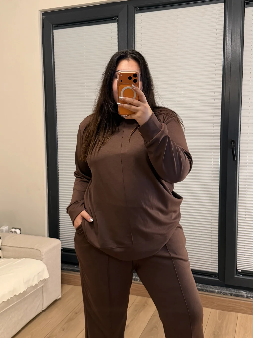 Pastel Butik Premium Çıma Detaylı Modal Eşofman Takımı - Kahverengi, şıklığı ve konforu bir arada sunar.