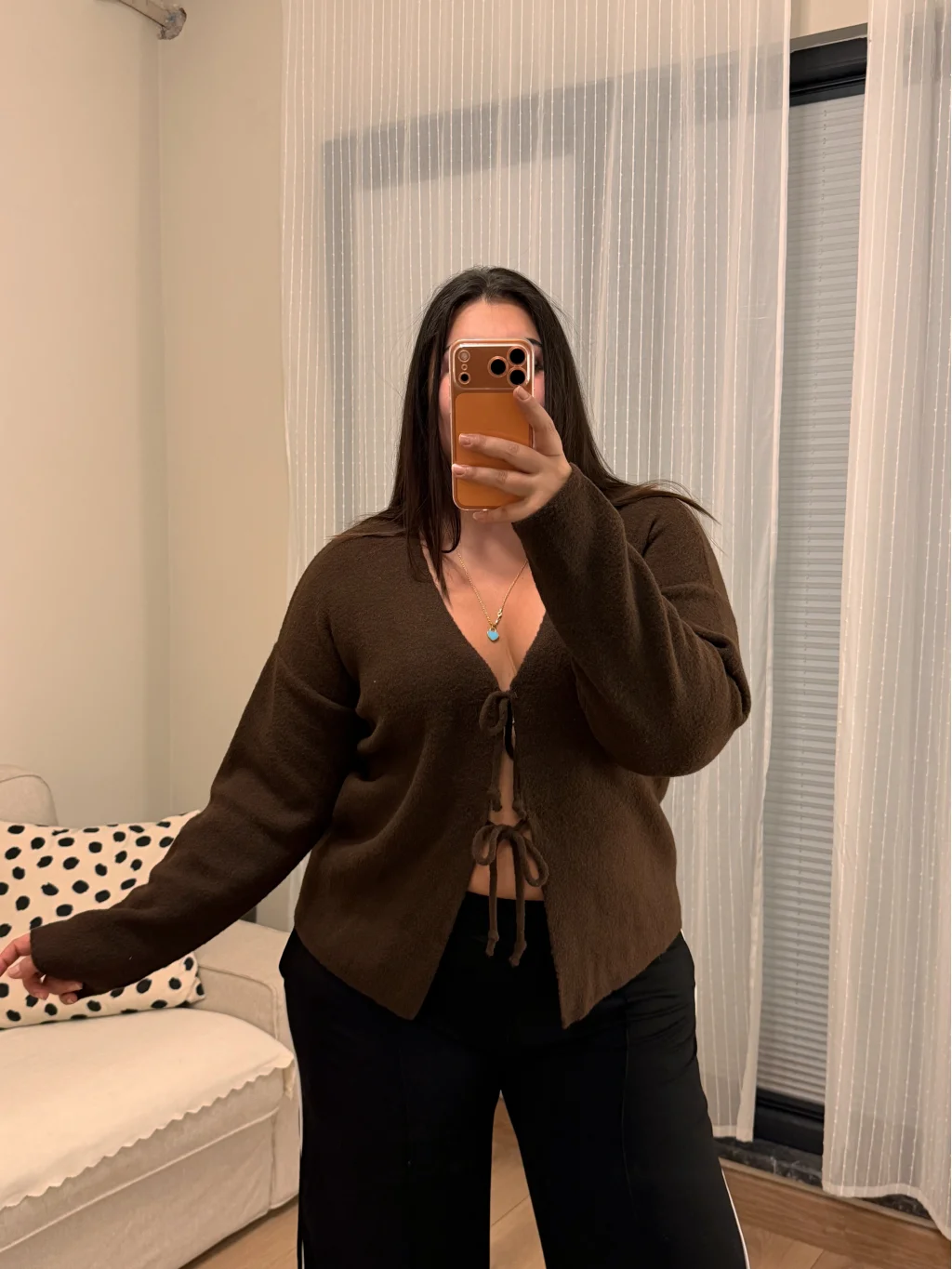 PASTEL Premium Fiyonk Detaylı Sakallı Triko Bluz - Kahverengi, şıklığı ve rahatlığı bir arada sunuyor.