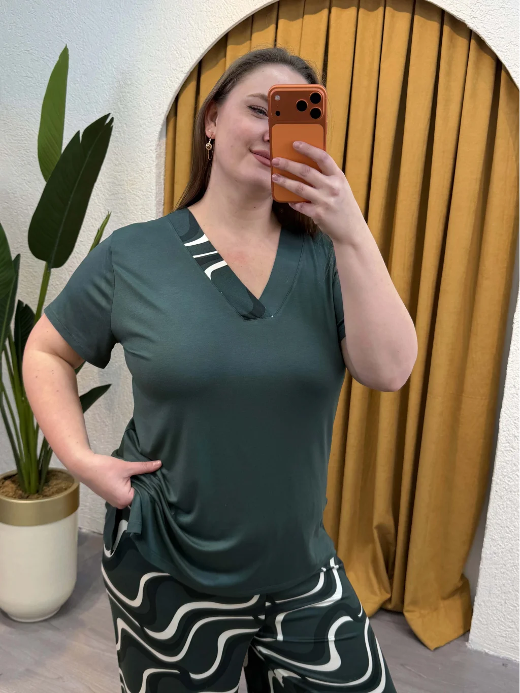 Premium Geniş Kesim V Yaka Ring Viskon - Haki