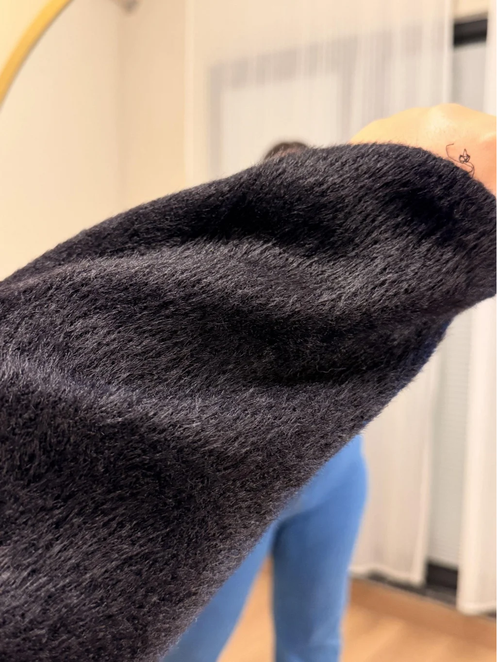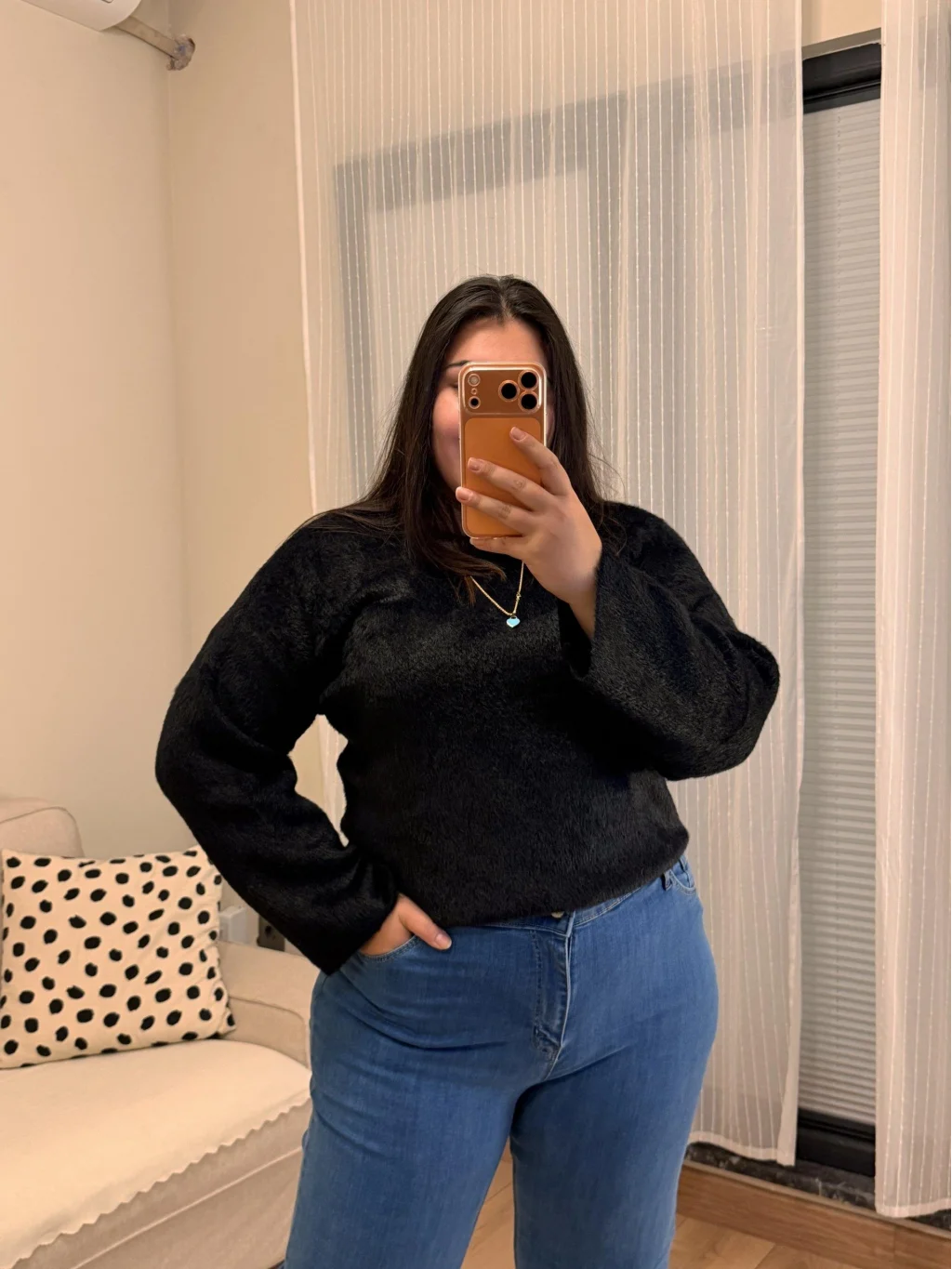 Premium Oversize Sakallı Triko Bluz - Siyah
