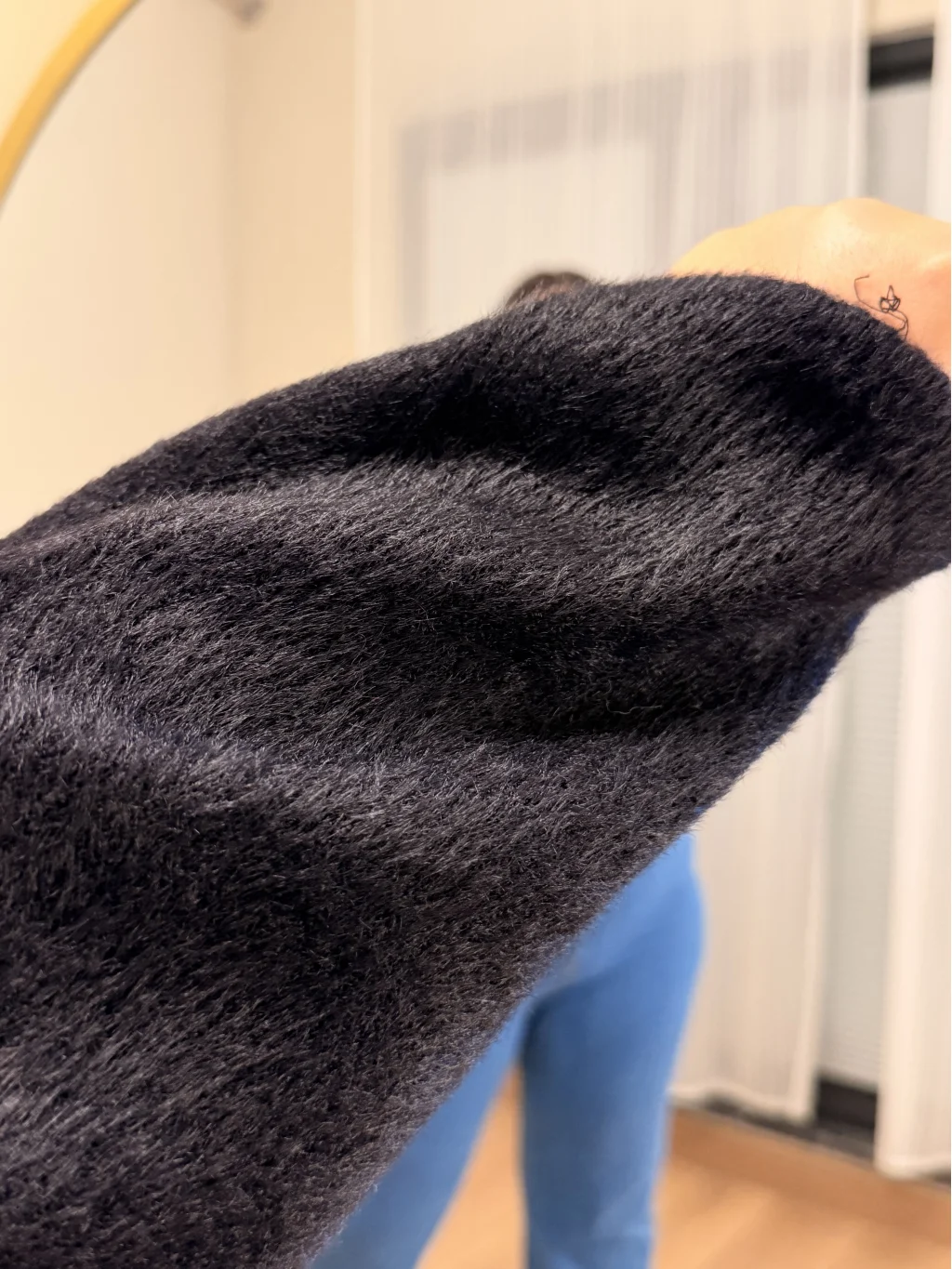 PASTEL Premium Oversize Sakallı Triko Bluz - Siyah. Modern ve şık görünüm için ideal seçim!