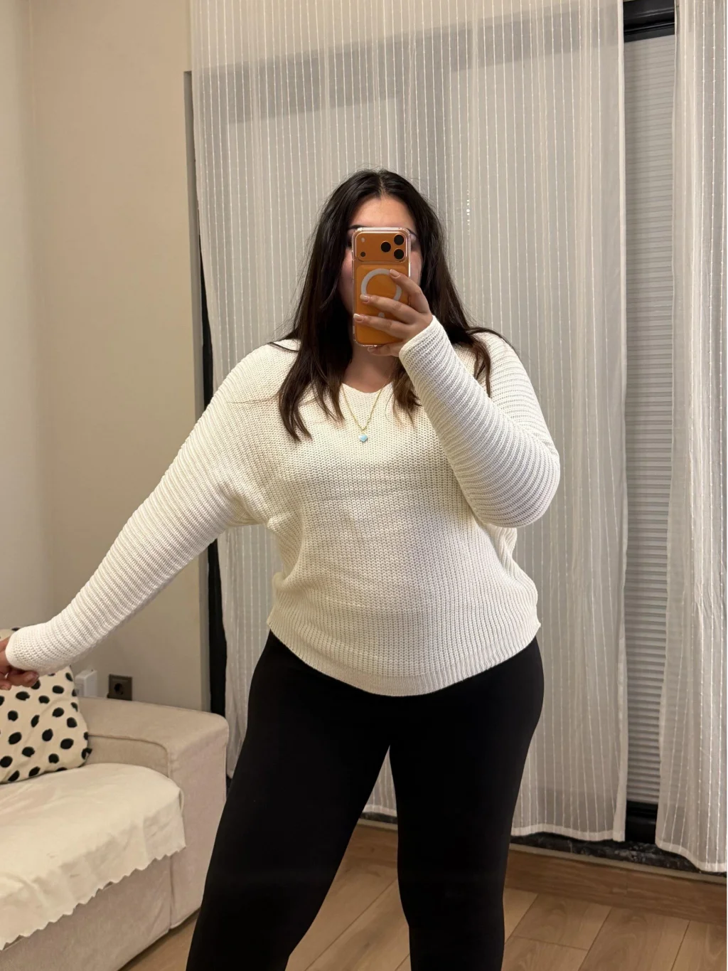 V Yaka Esnek Selanik Triko Bluz - Beyaz
