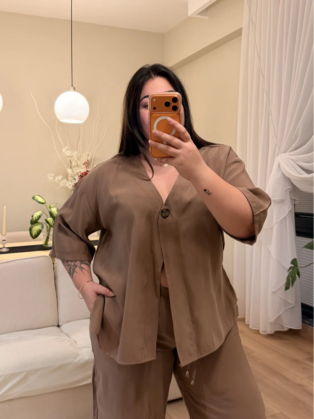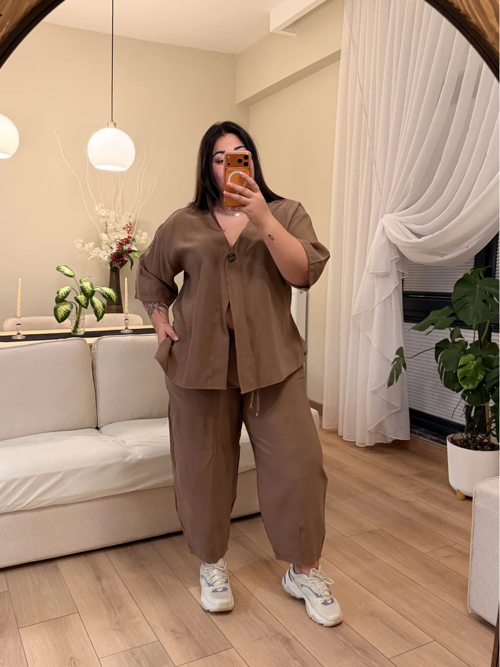 Tek Düğmeli Bohem Tensel Takım - Kahverengi