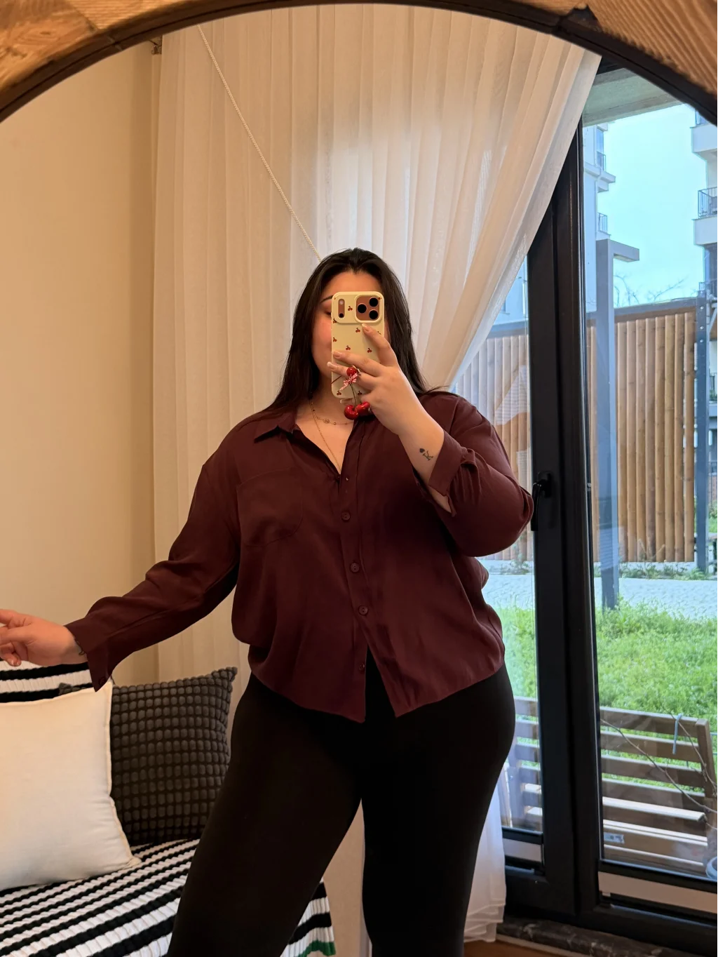 Pastel Butik Tensel Modal Gömlek - Bordo, büyük beden gömlek arayanların favorisi olmaya aday.