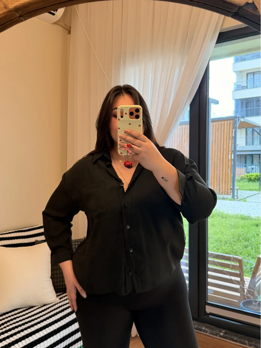 Pastel Butik Tensel Modal Gömlek - Siyah, büyük beden gömlek arayanların favorisi olmaya aday.