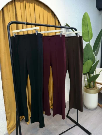 Nervur Detaylı Likralı Krep Kumaş İspanyol Pantolon