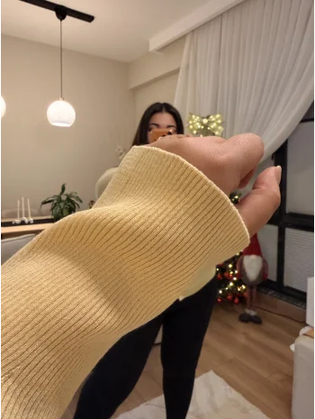 V Yaka Esnek Selanik Triko Bluz - Beyaz