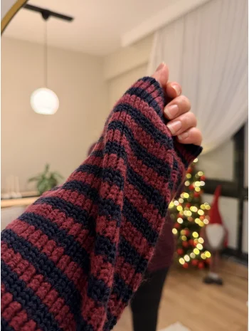 Premium Çizgili Düğmeli Triko Hırka - Bordo Çizgili