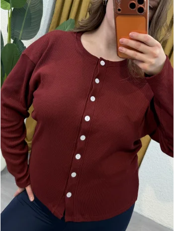 Fermuarlı Dik Yaka Modal Karışımlı Bluz - Bordo