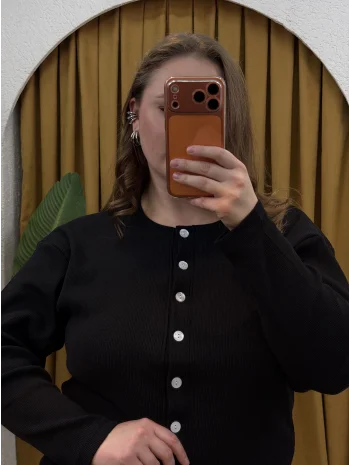 Fermuarlı Dik Yaka Modal Karışımlı Bluz - Siyah