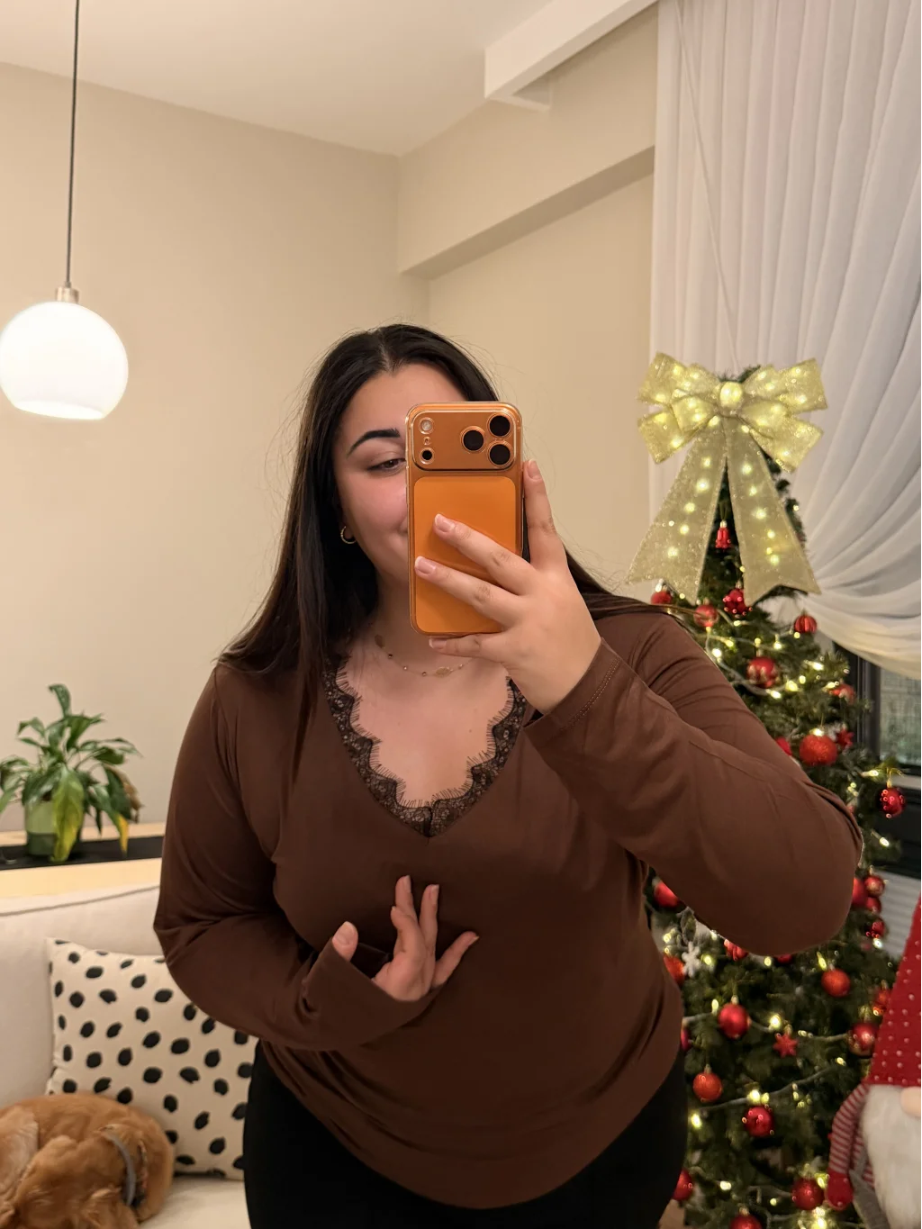Pastel Butik V yaka dantel detaylı esnek modal bluz, şıklığı ve rahatlığı bir arada sunar.