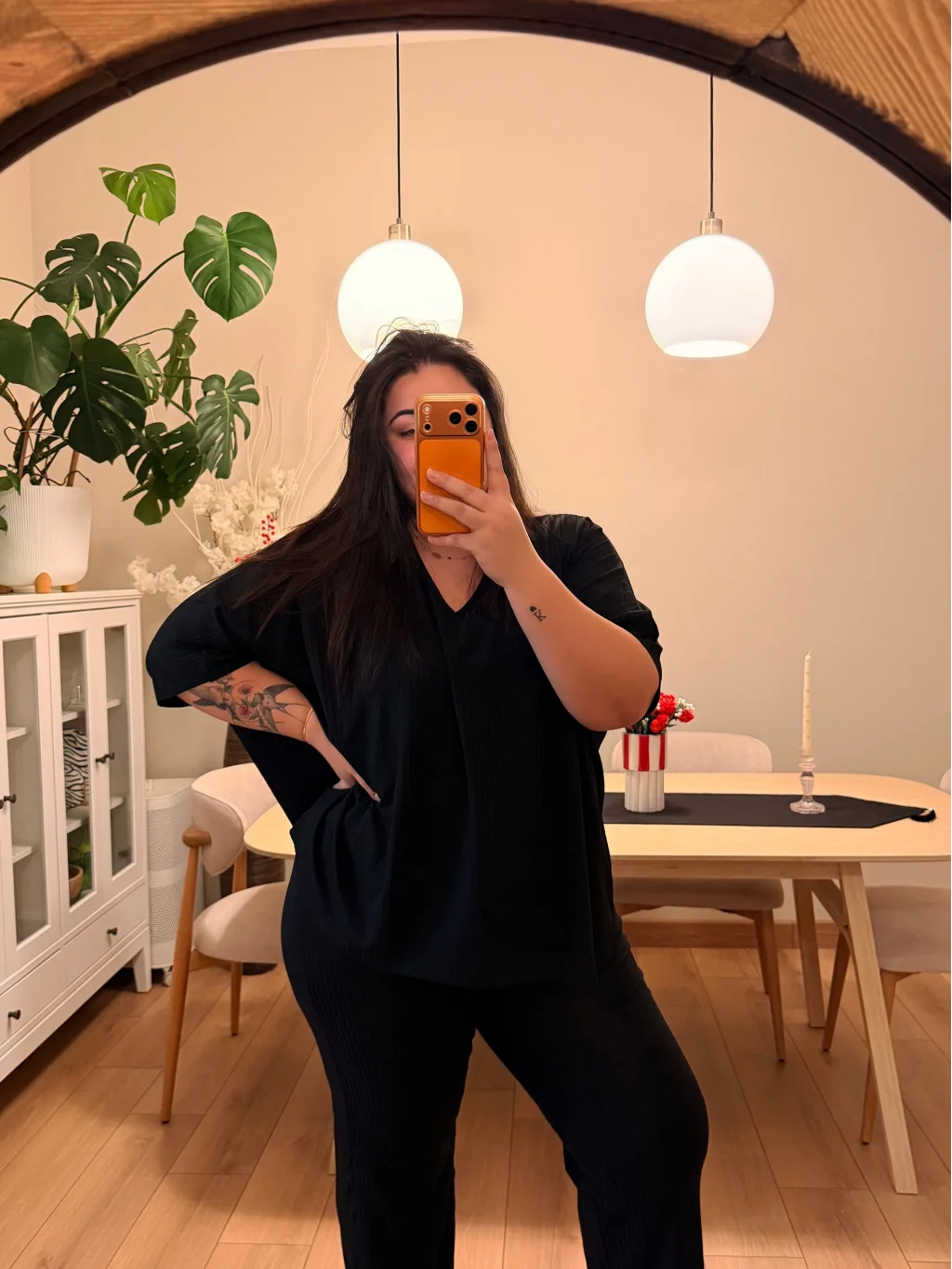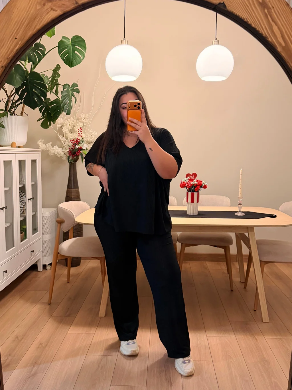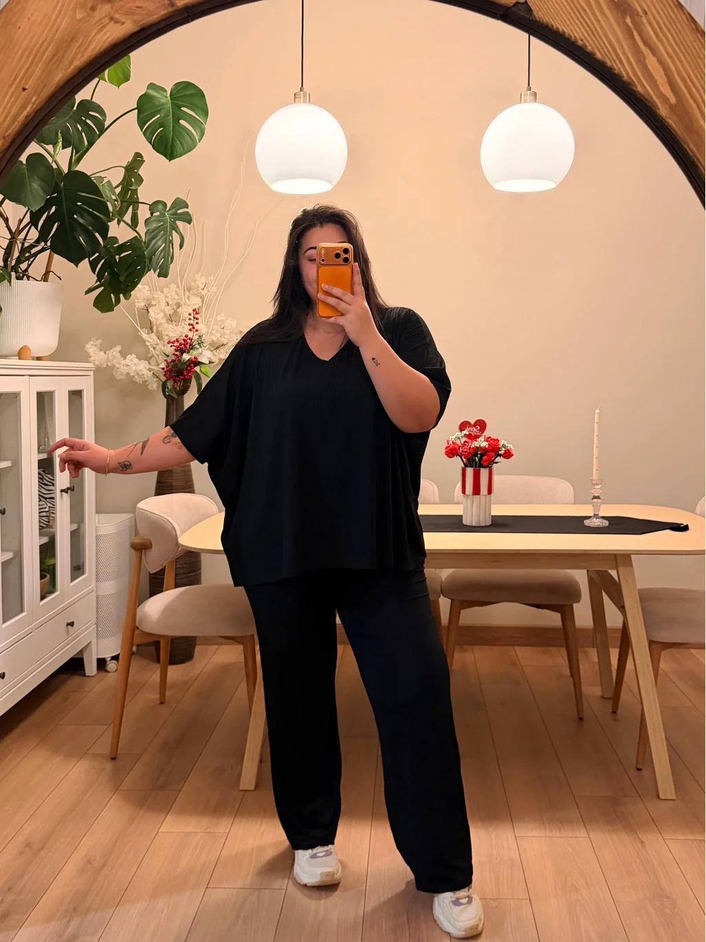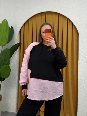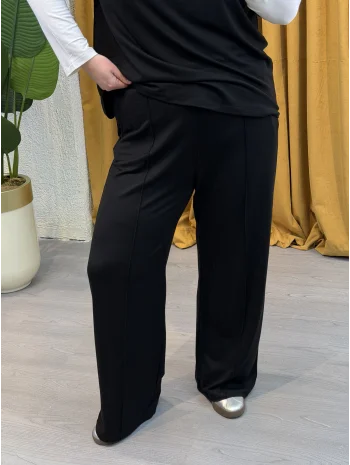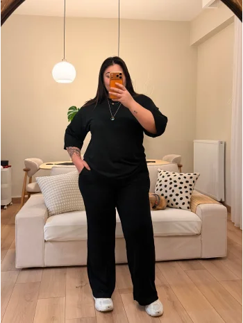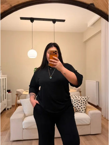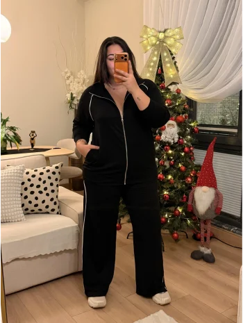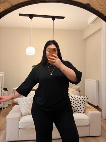 V Yaka Yarasa Kol Esnek Fitilli Takım - Siyah