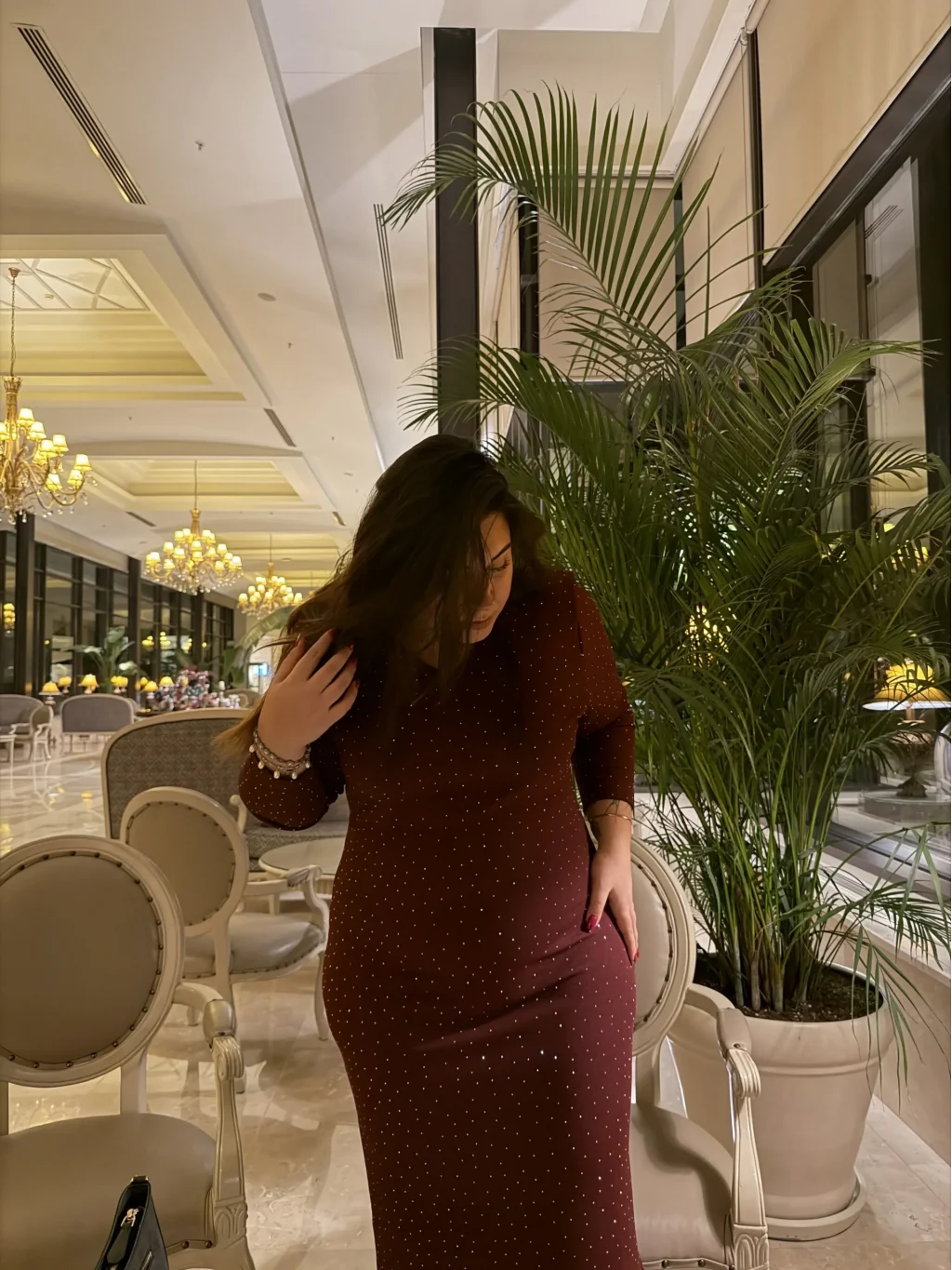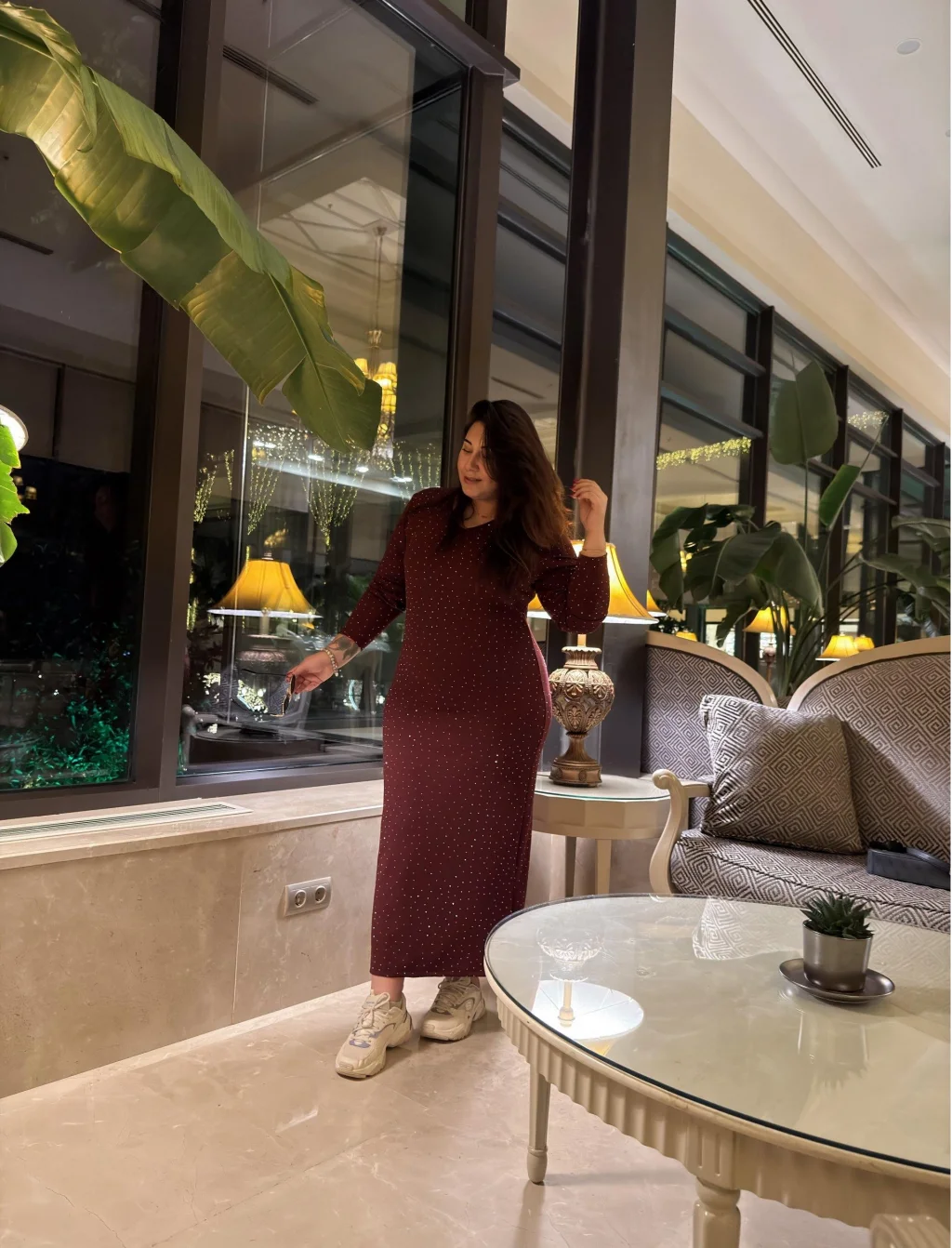 V Yaka Zara Krep Shine Elbise - Bordo