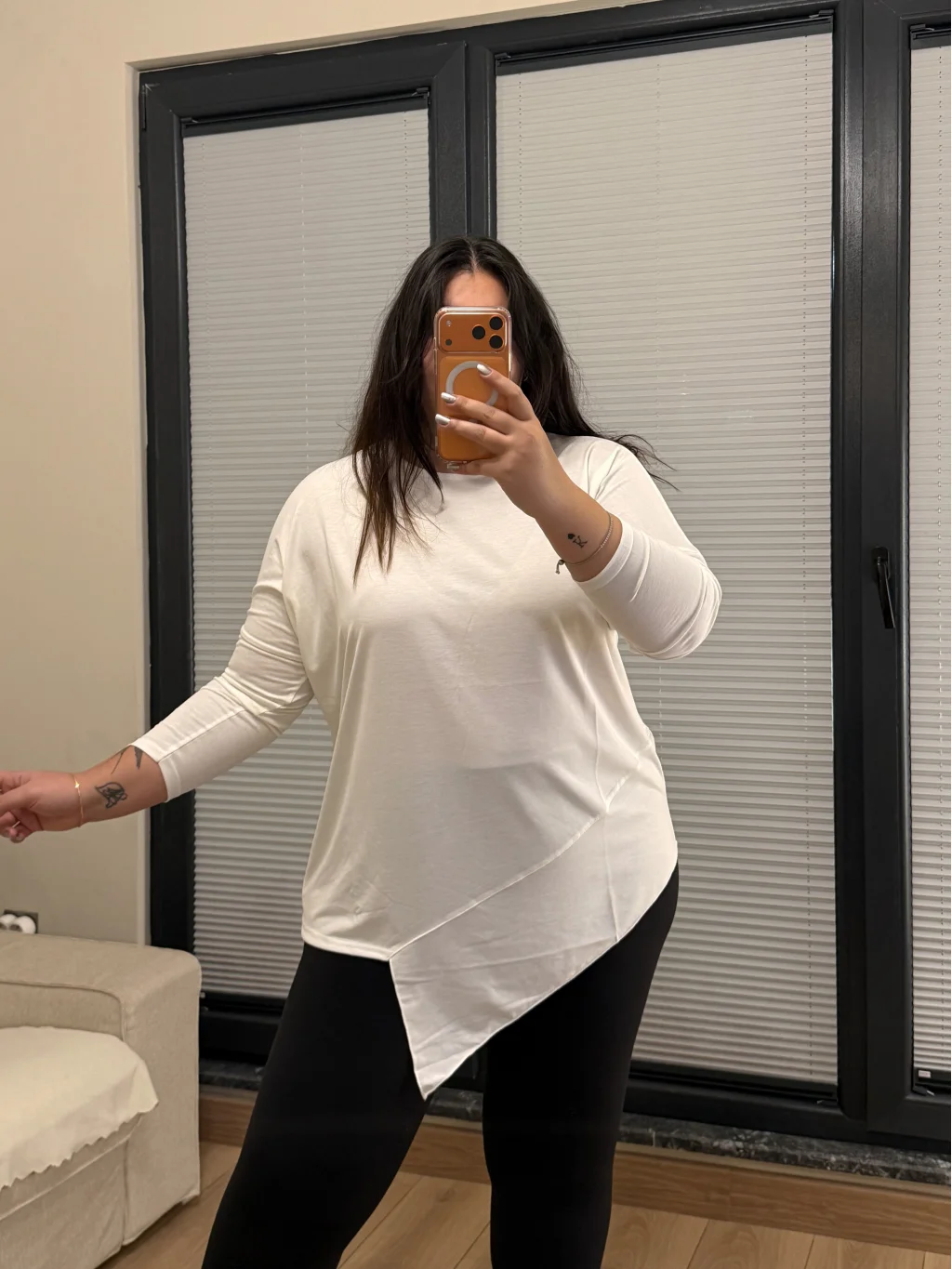 PASTEL BUTİK Yarım Asimetrik Modal Kumaş Esnek Bluz - Beyaz, şıklığı ve rahatlığı bir arada sunar.